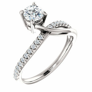1ct Round Cut Diamond Twisted Solitaire Engagement Ring 14k White Gold Finish
