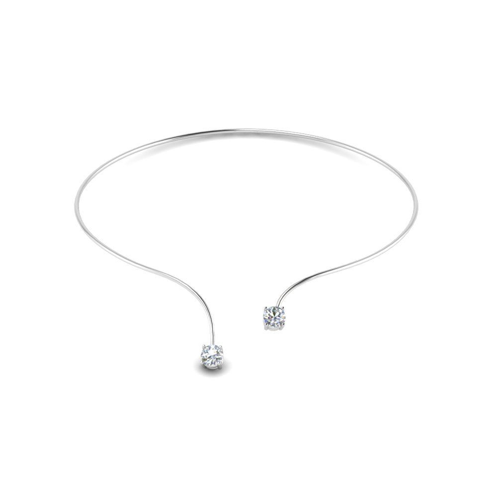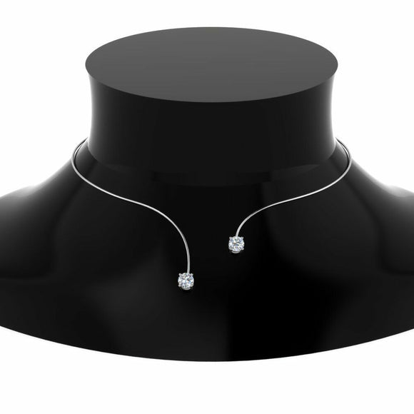 1ct Round Cut Diamond Unique Open Collar Necklace Women 14k White Gold Finish
