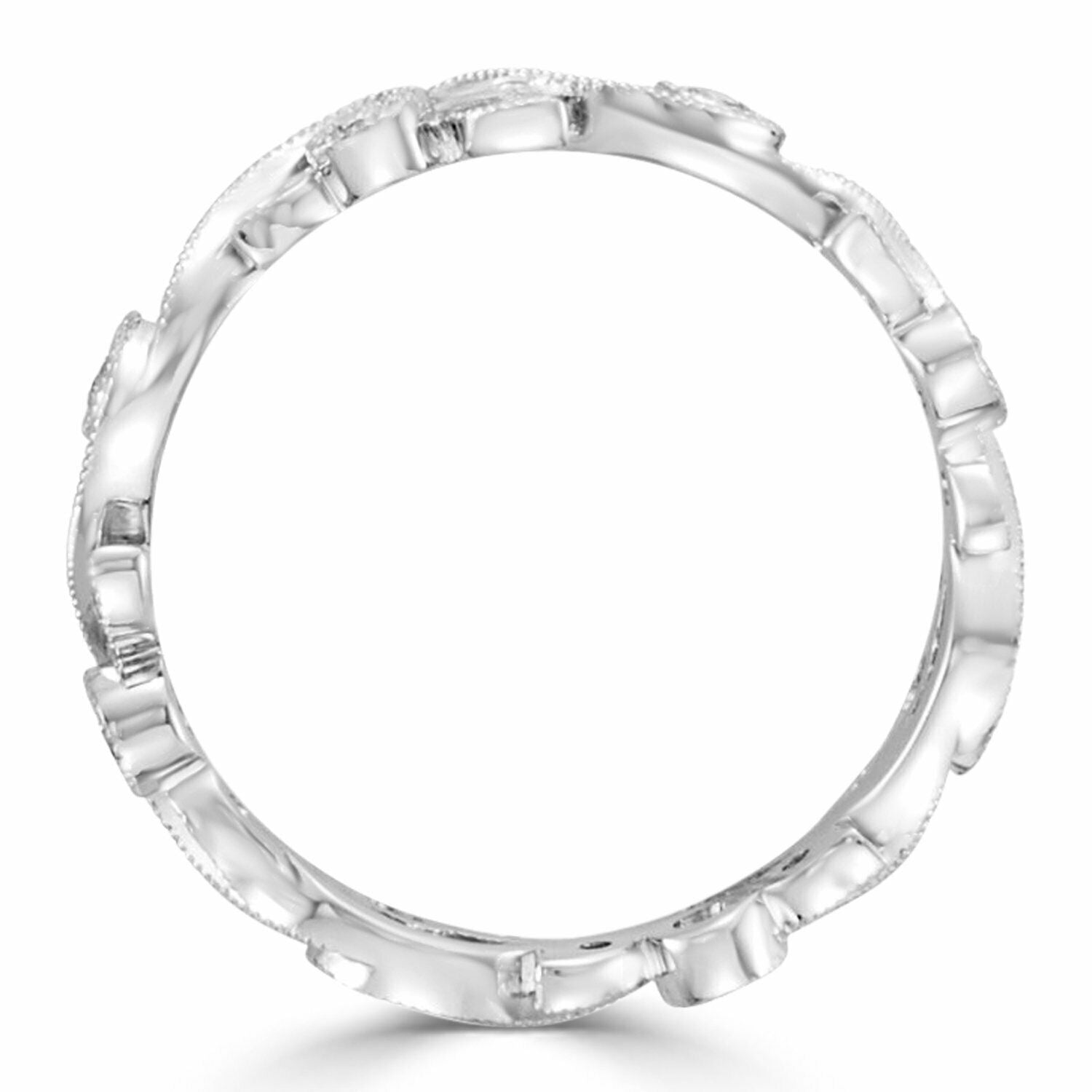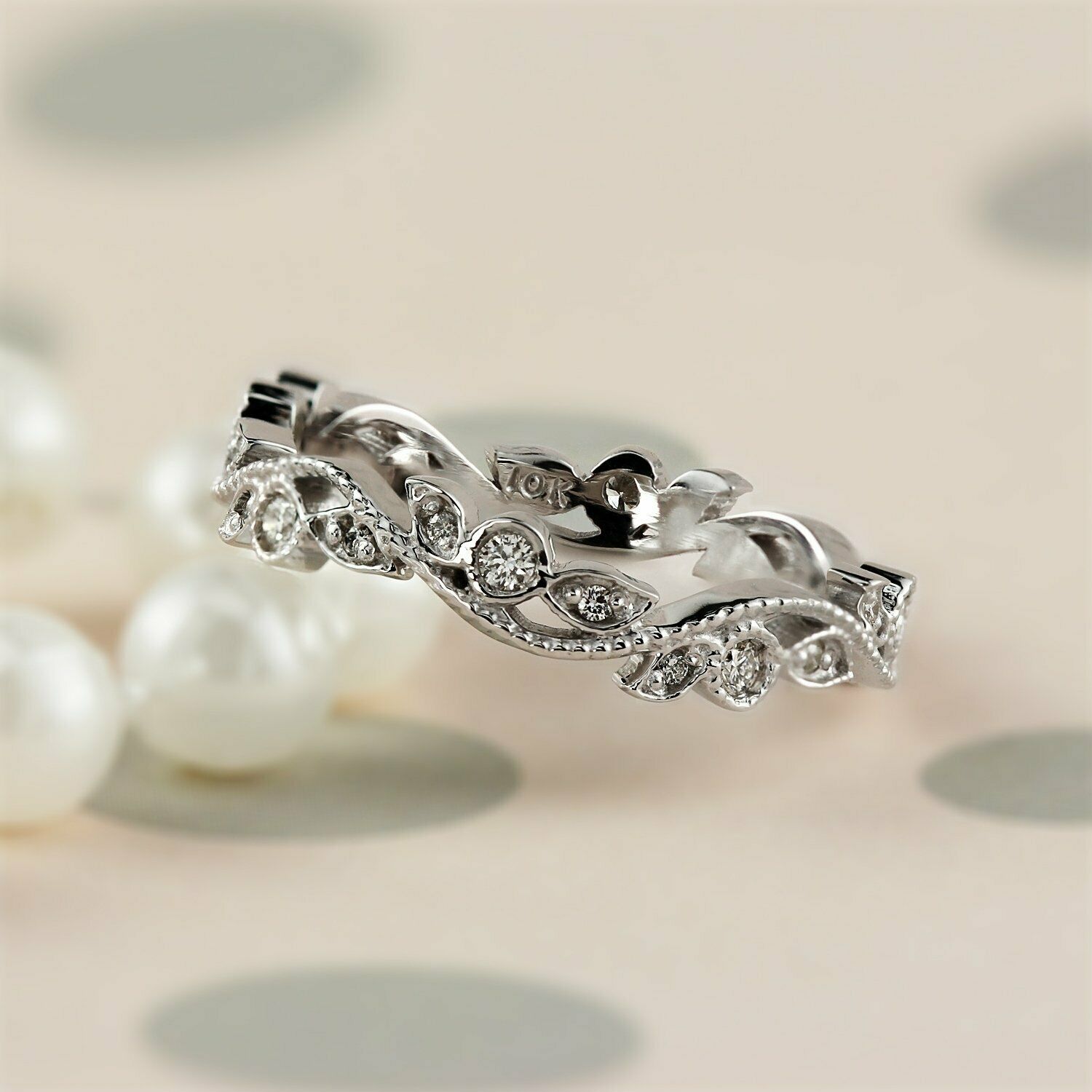 1Ct Round Cut Diamond Vintage Floral Vine Wedding Band 14K White Gold Finish