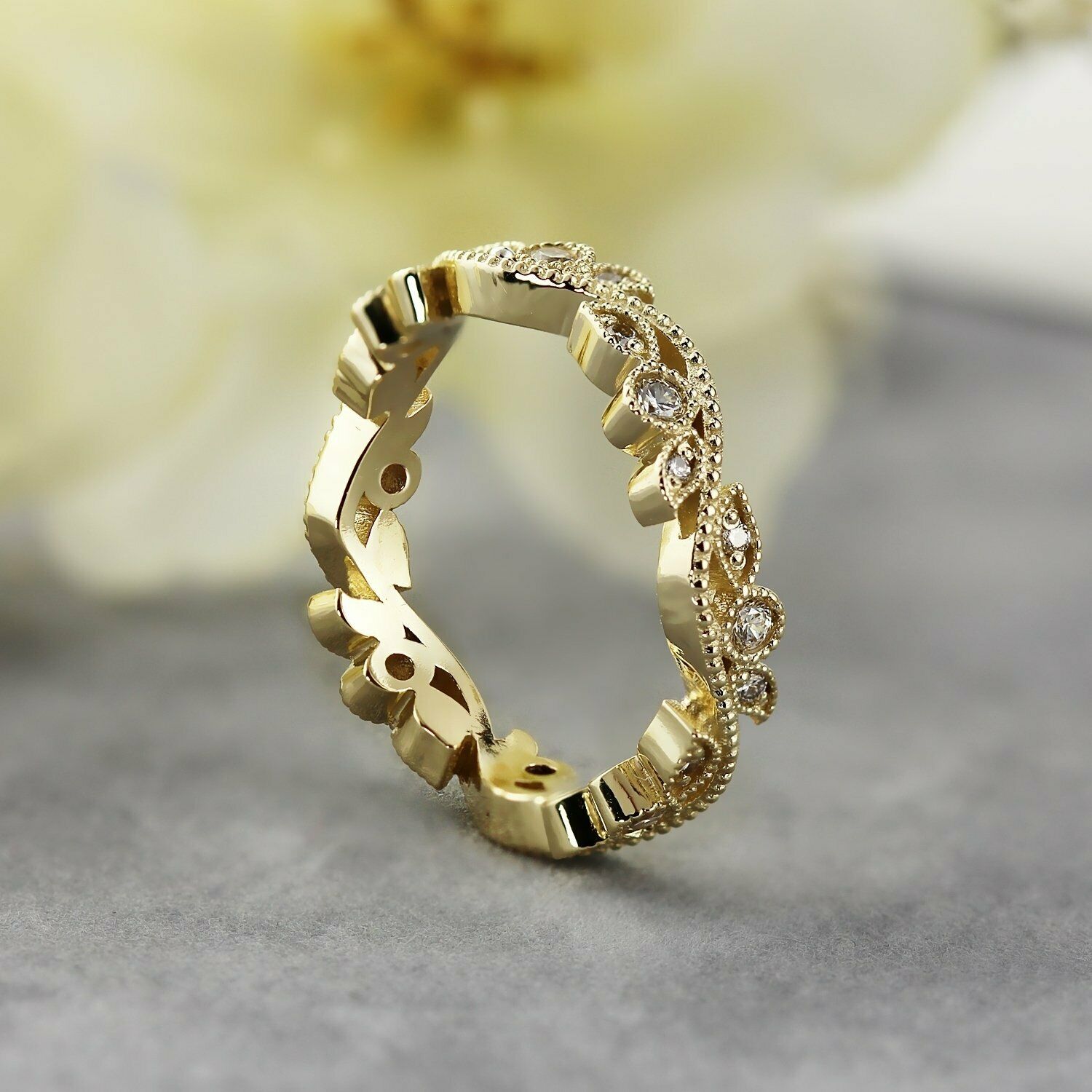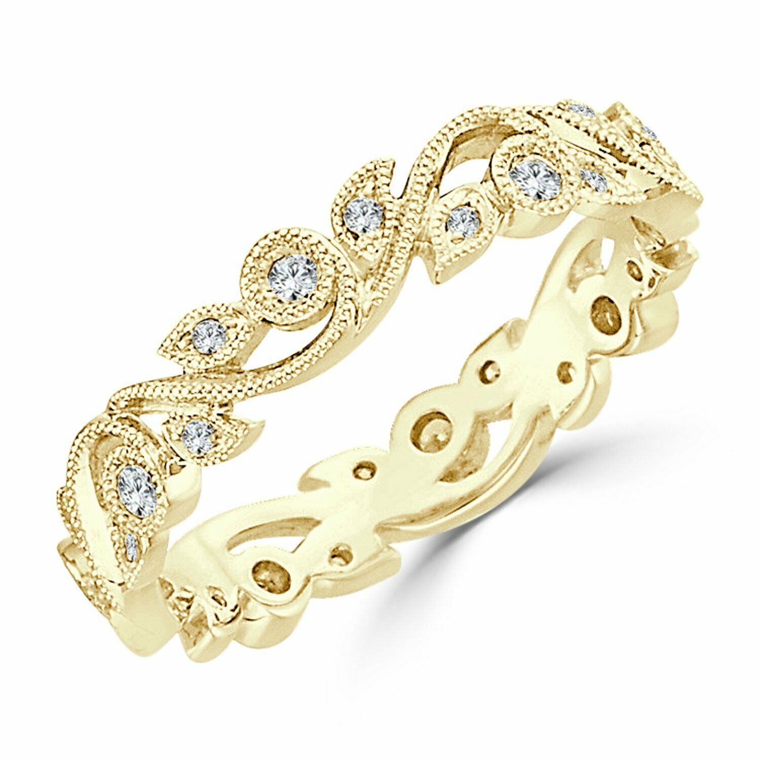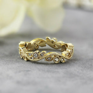1Ct Round Cut Diamond Vintage Floral Vine Wedding Band 14K Yellow Gold Finish