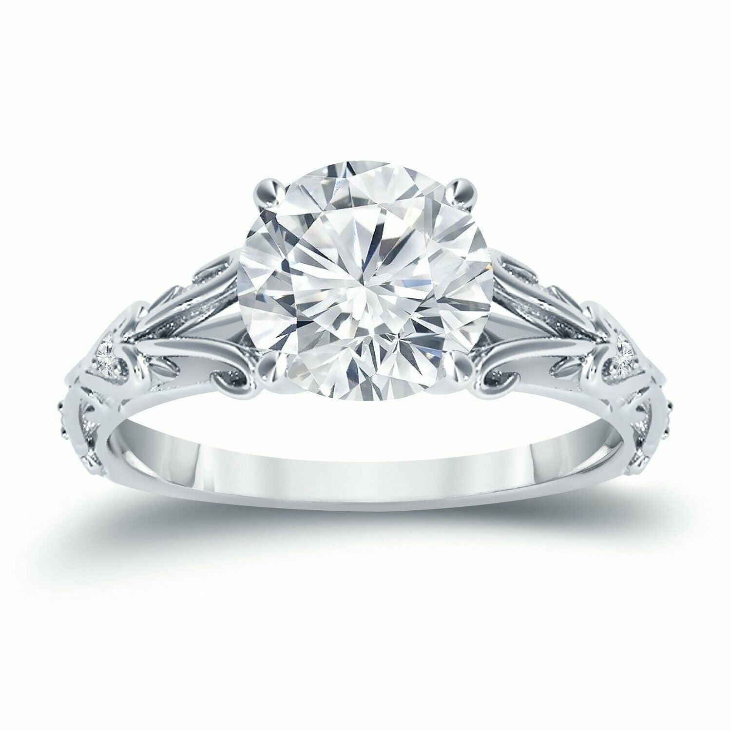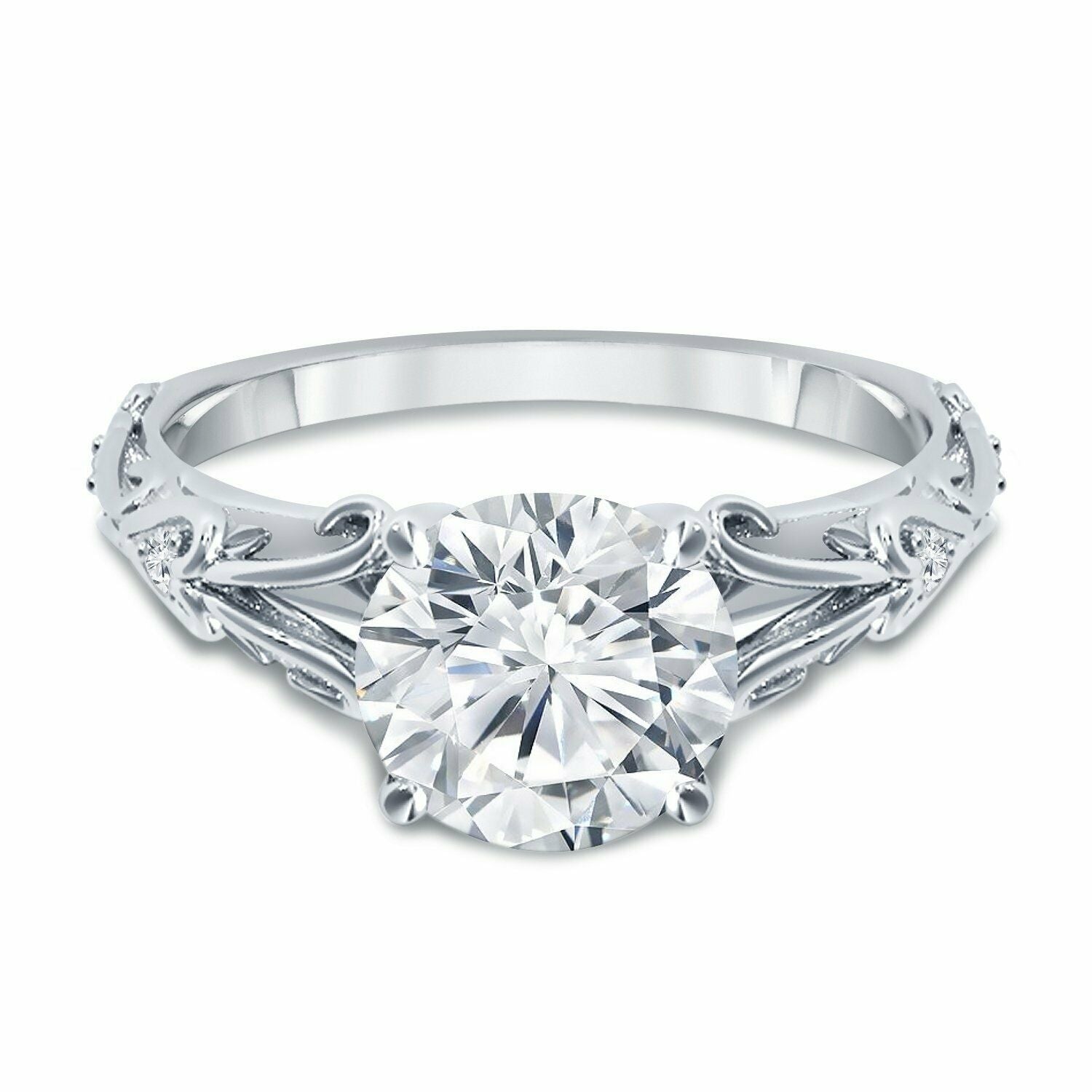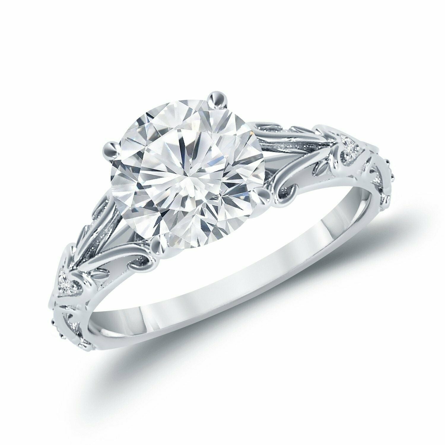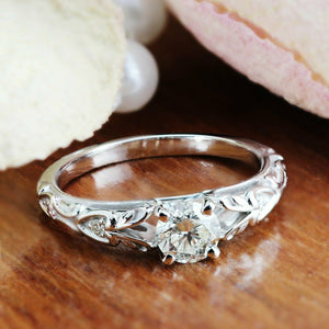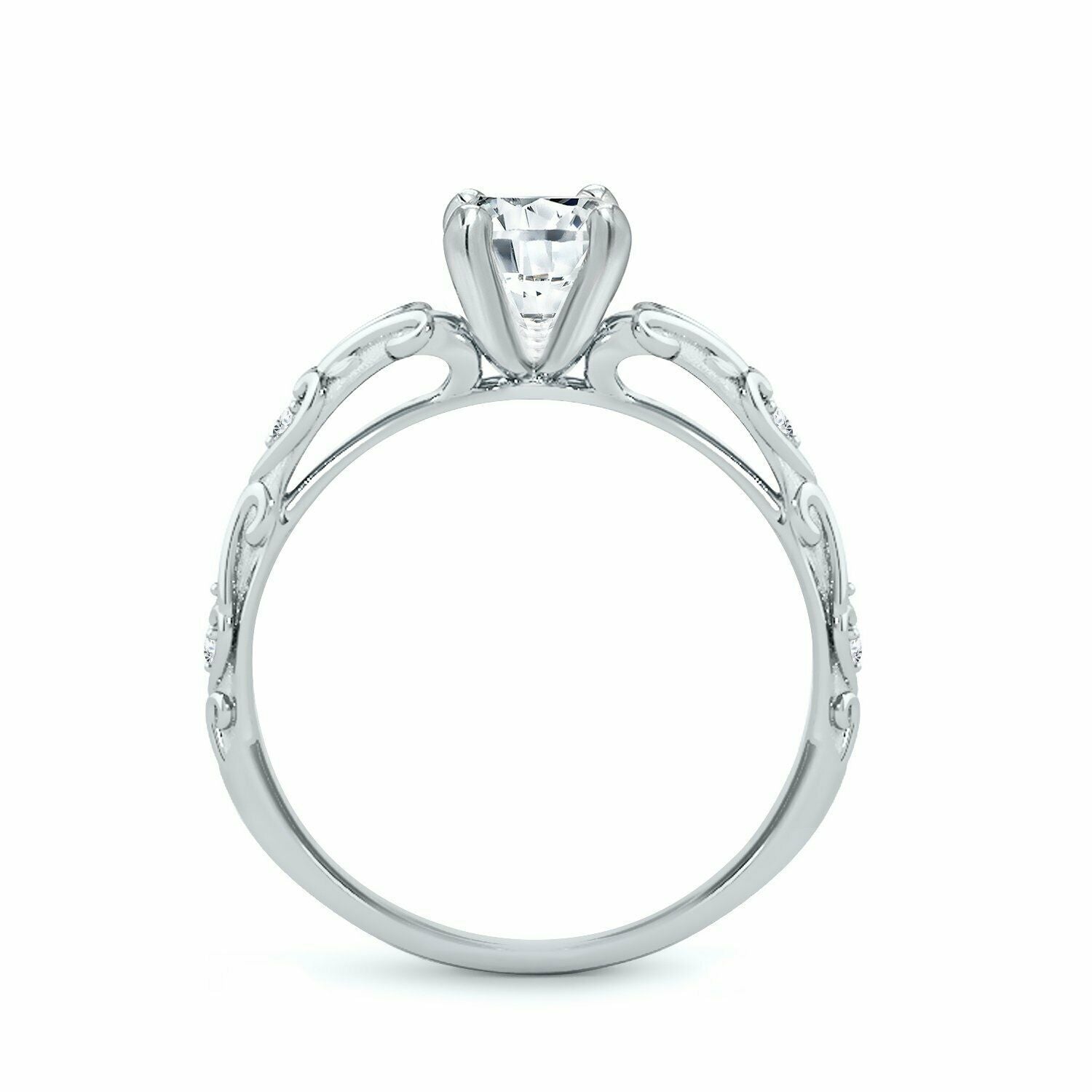 1Ct Round Cut Diamond Vintage Solitaire Engagement Ring 14K White Gold Finish