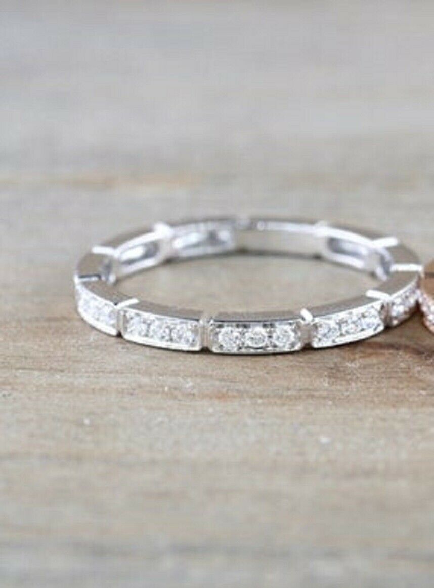 1ct Round Cut Diamond Wedding Band 14k White Gold Finish Stackable Anniversary