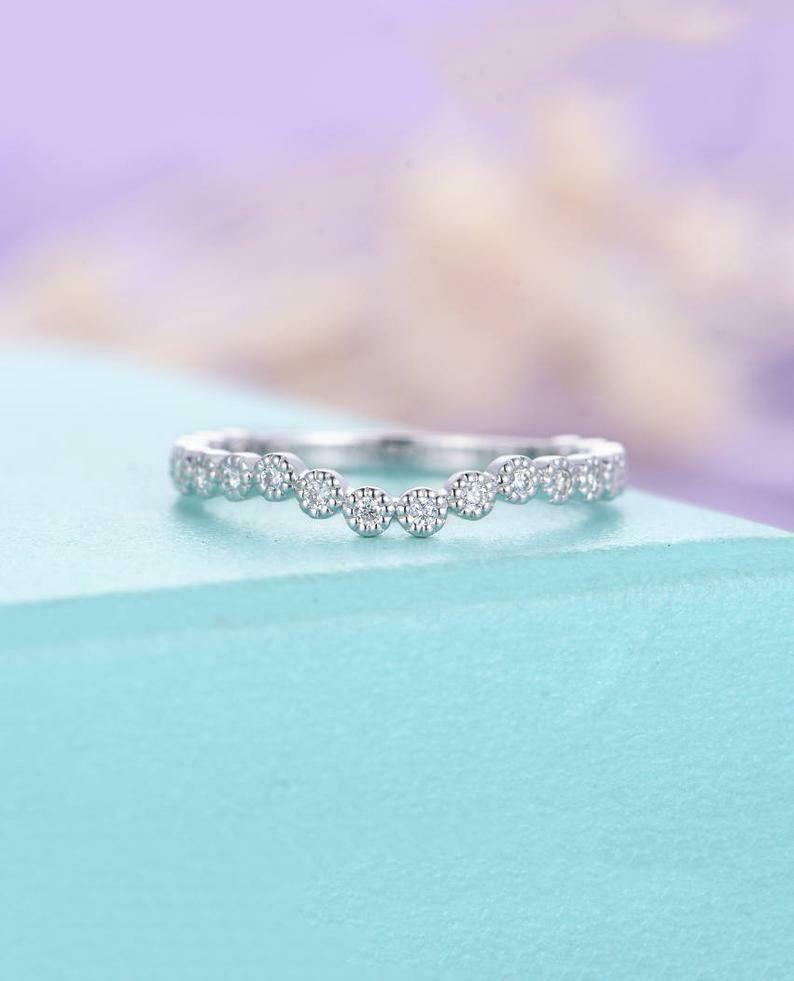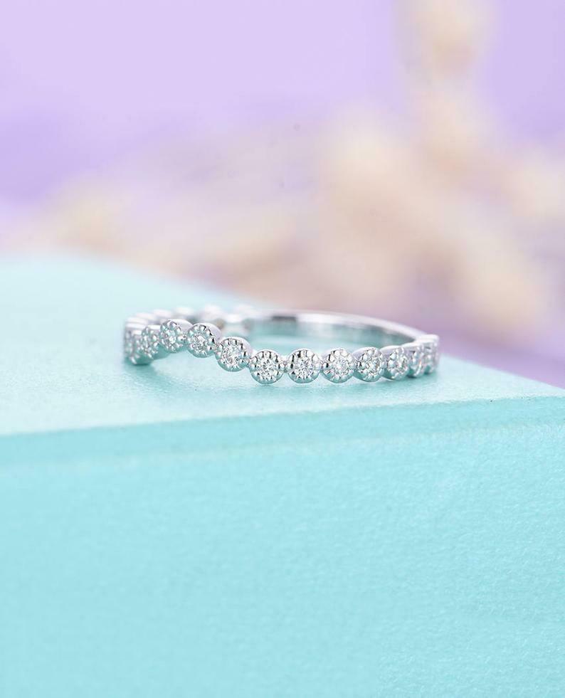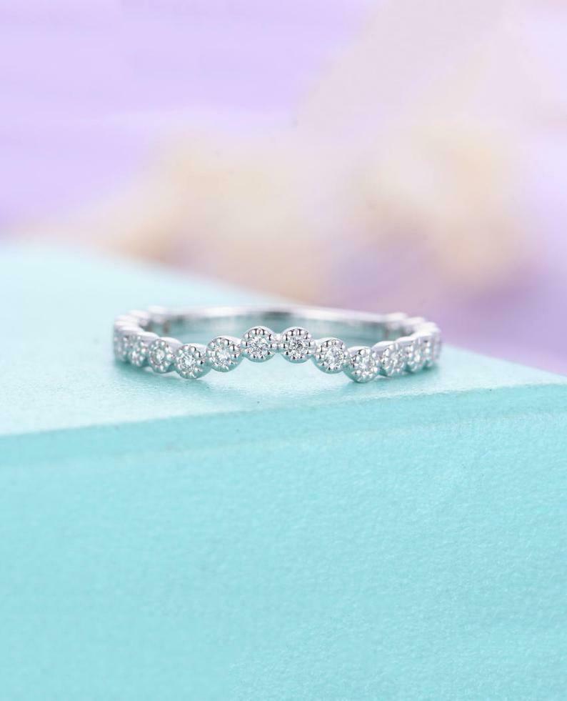 1ct Round Cut Diamond Wedding Band Curved Stackable Milgrain 14k White Gold Over