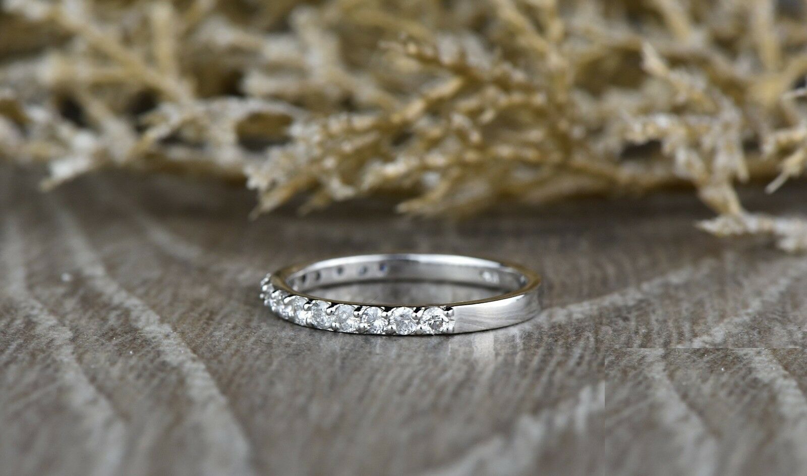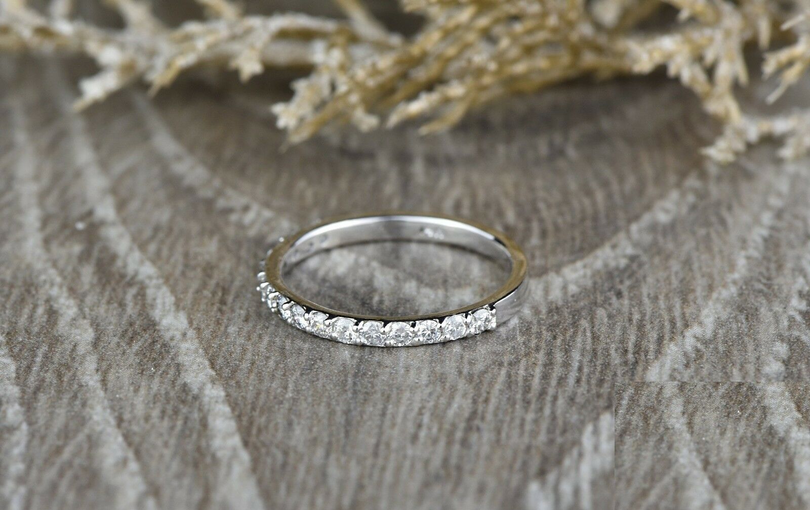 1ct Round Cut Diamond Wedding Ring Band 14k White Gold Over Half Eternity Bridal
