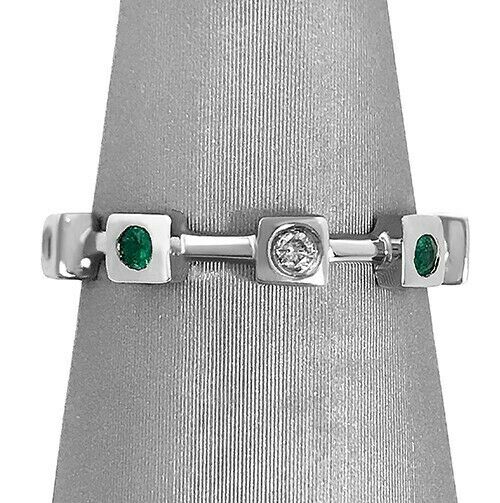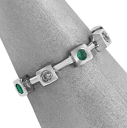 1Ct Round Cut Green Emerald Diamond Cube Thin Wedding Band 14K White Gold Finish