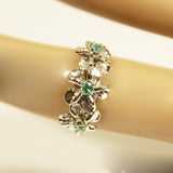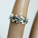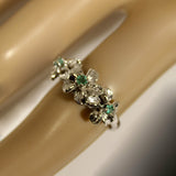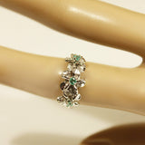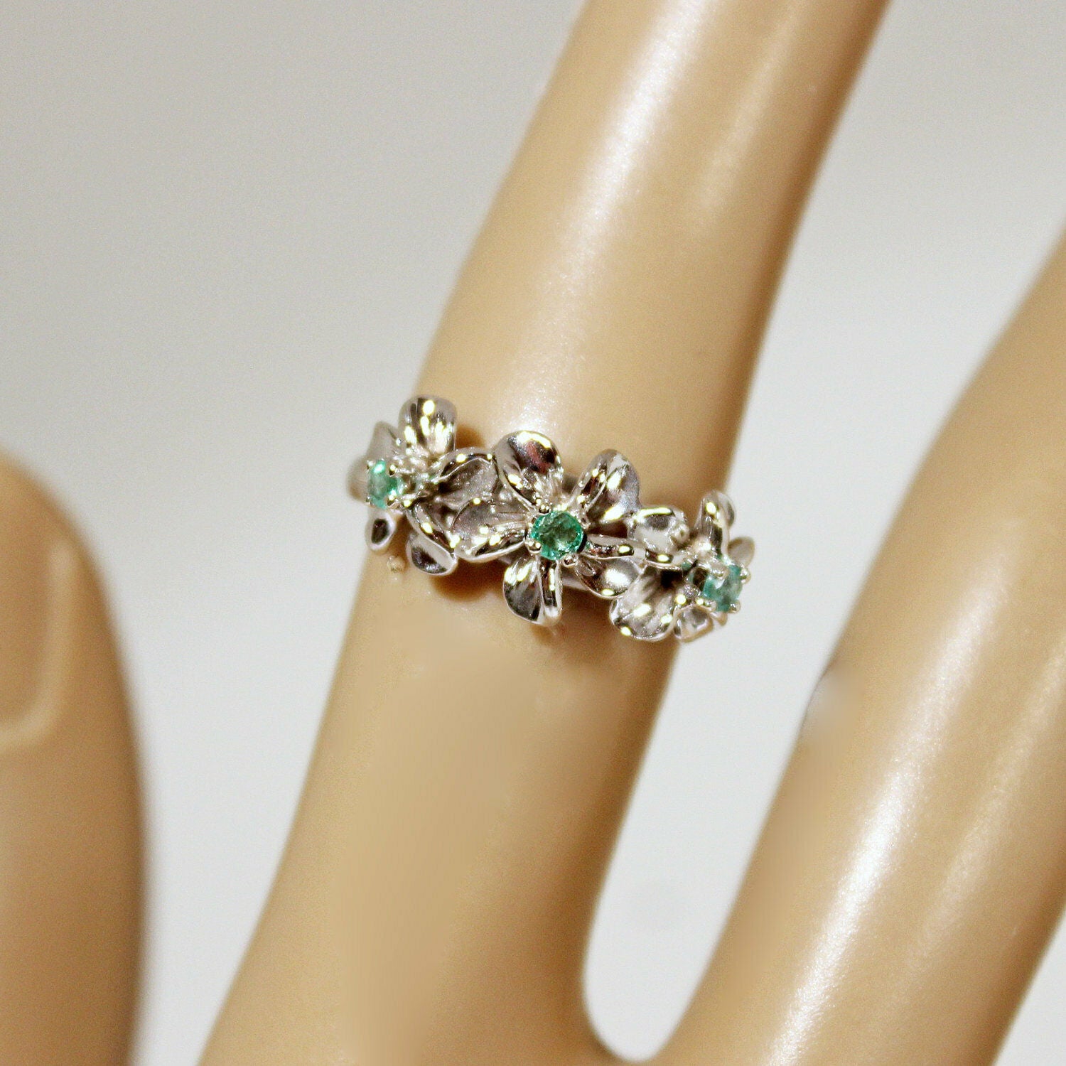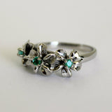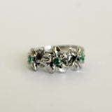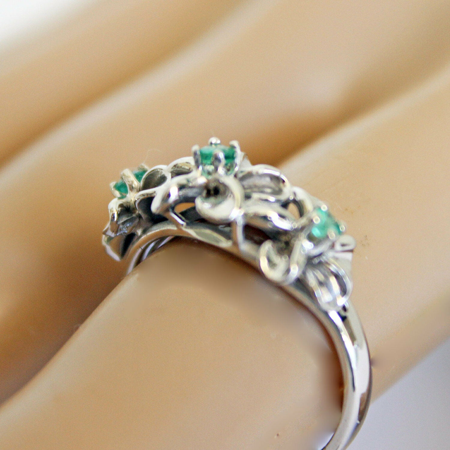 1Ct Round Cut Green Emerald Three Flowers Engagement Ring 14K White Gold Finish