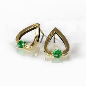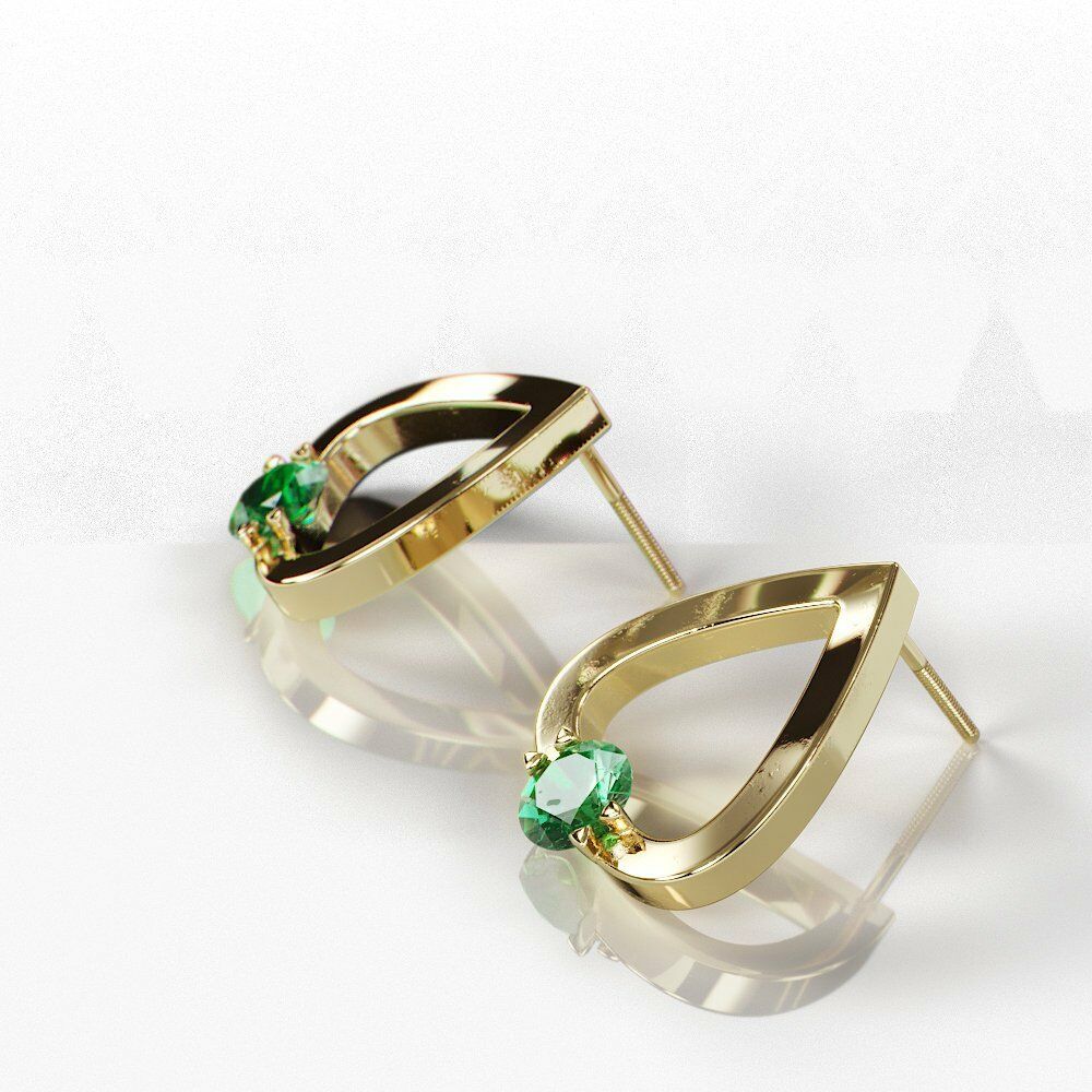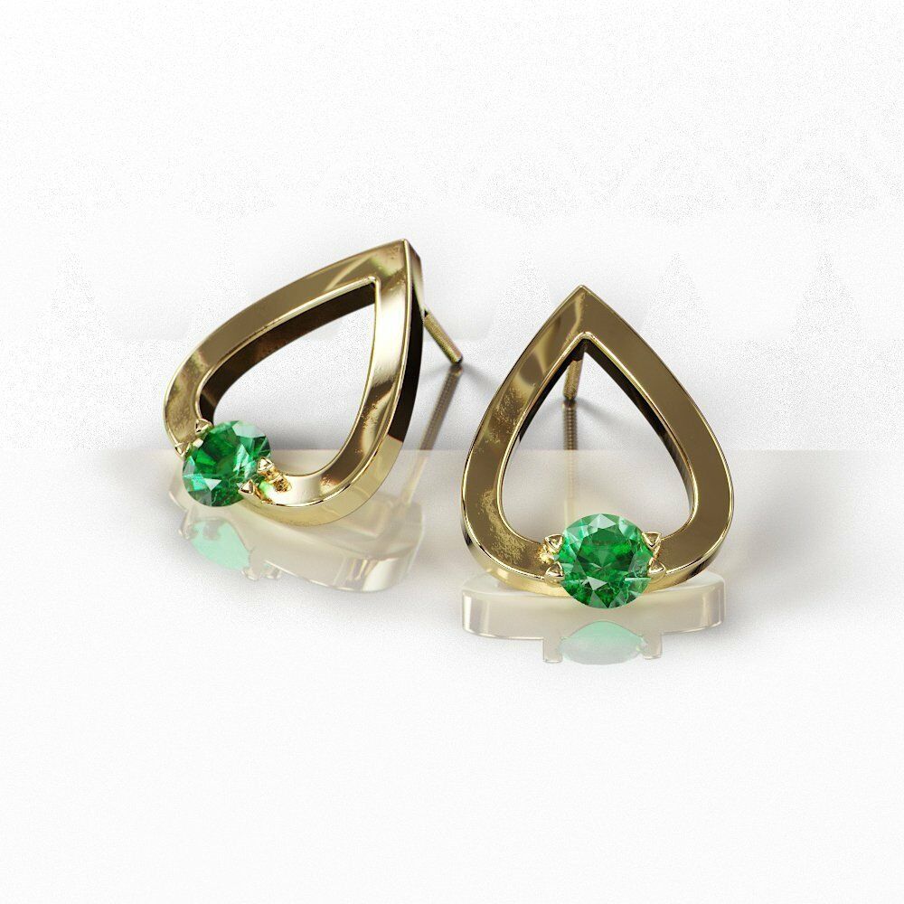 1Ct Round Cut Green Emerald Water Tear Drop Earrings Women 14K Yellow Gold Over