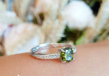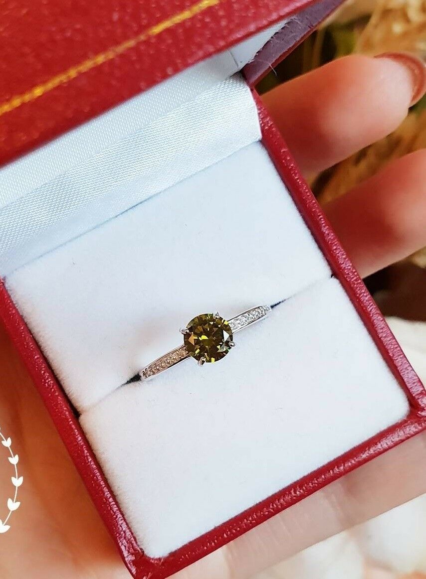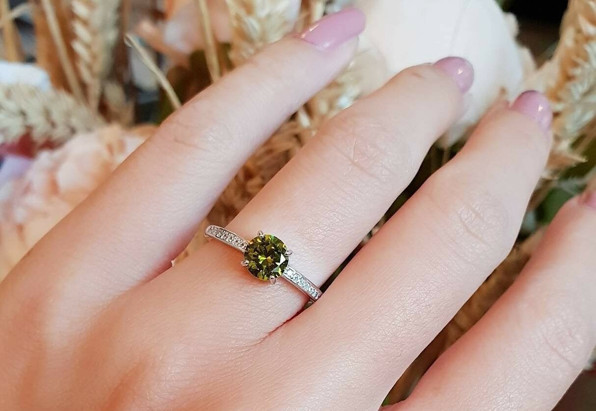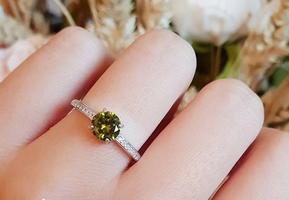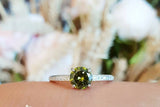 1ct Round Cut Green Peridot Engagement Ring 14k White Gold Finish Minimalist