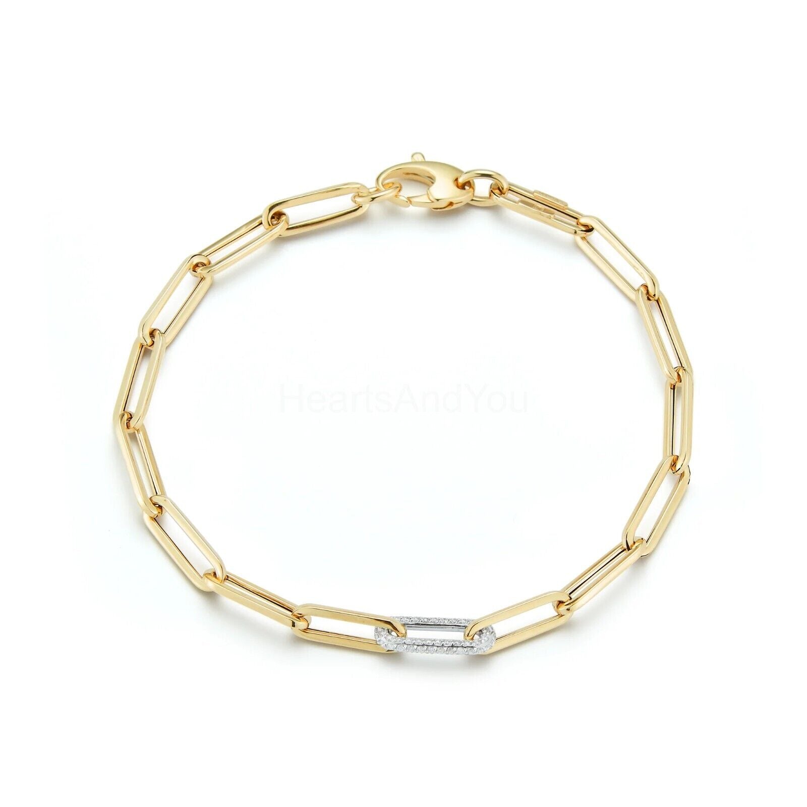 1ct Round Cut Moissanite Paperclip Chain Stylish Bracelet 14k Yellow Gold Plated