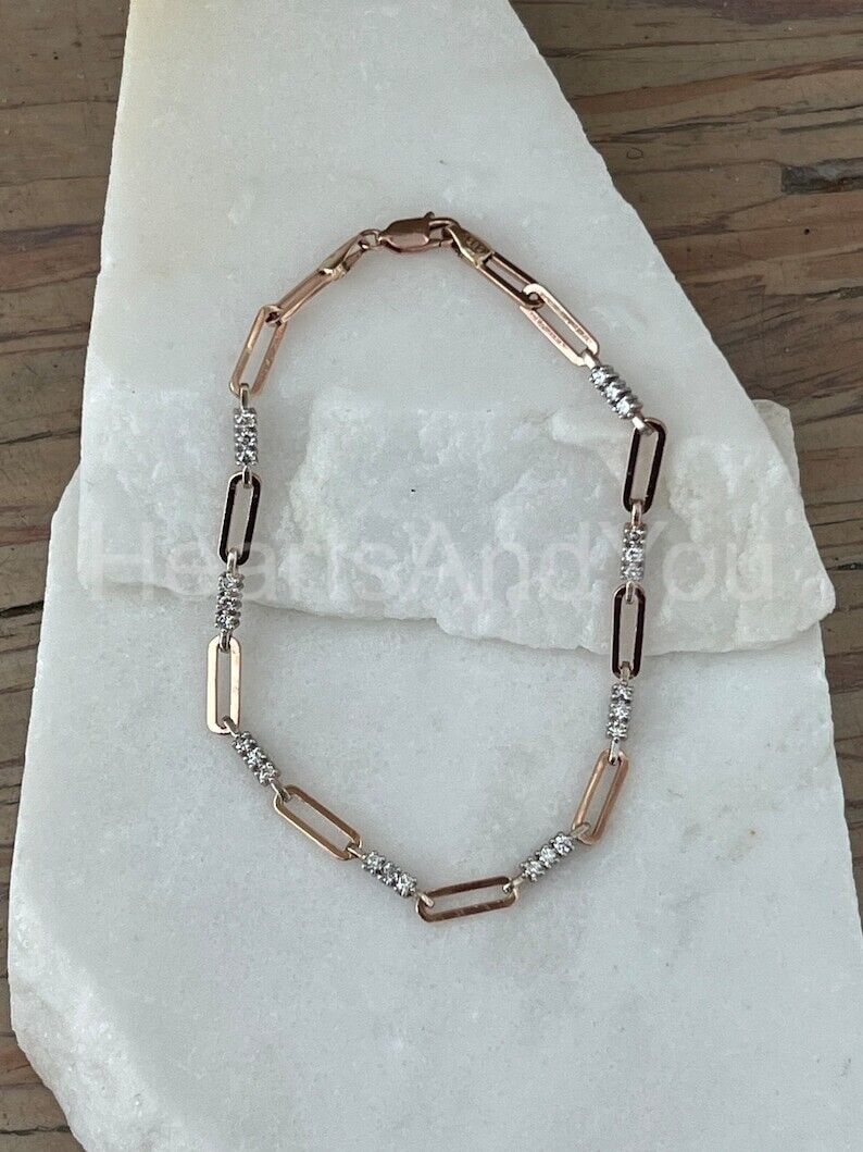 1ct Round Cut Moissanite Stylish Paperclip Chain Bracelet 14k White Gold Plated