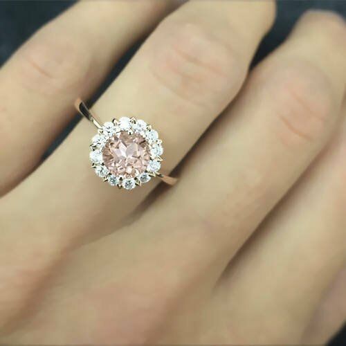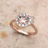 1ct Round Cut Peach Morganite Halo Floral Engagement Ring 14k Rose Gold Finish