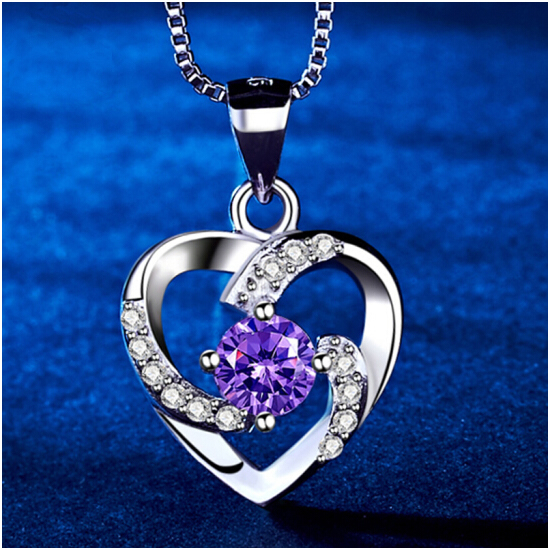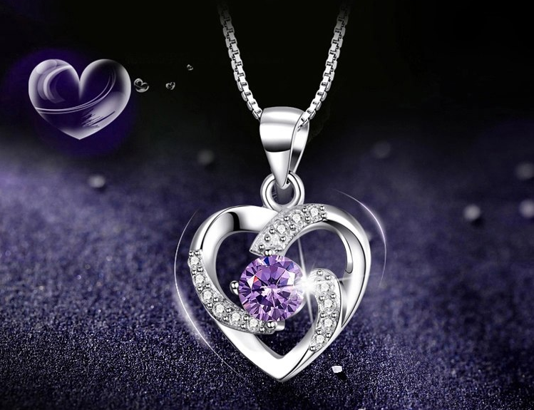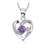 1ct Round Cut Purple Amethyst Pendant Heart Shape 18k White Gold Finish NO CHAIN