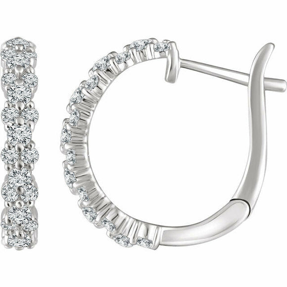1ct Round Cut VVS1 D Diamond Clustered Hoop Earrings Women 14k White Gold Finish