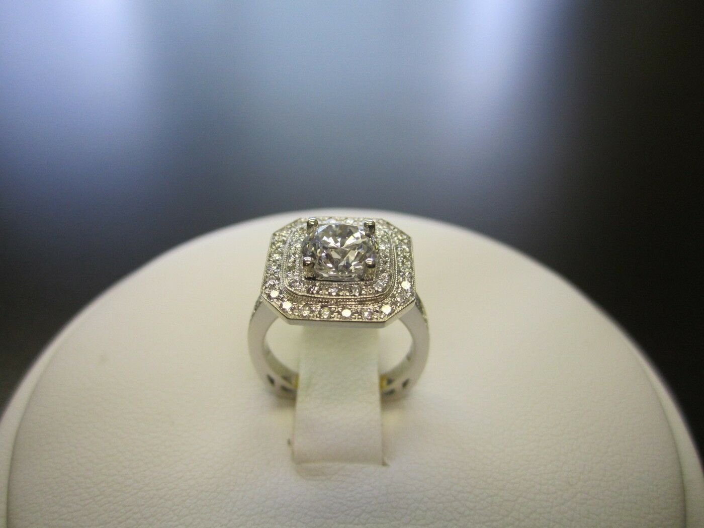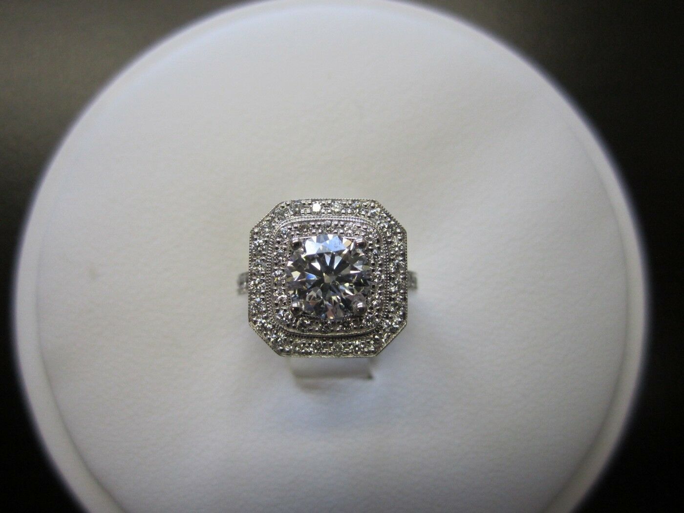 1ct Round Cut VVS1 D Diamond Fancy Cluster Engagement Ring 14k White Gold Finish
