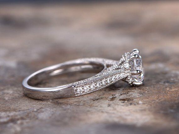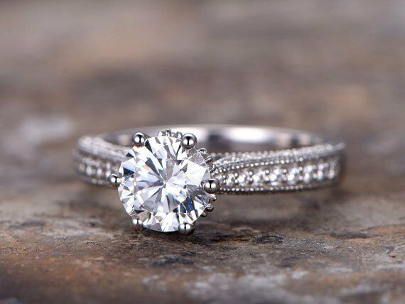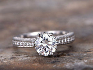 1ct Round Cut VVS1 Diamond Classic Vintage Engagement Ring 14k White Gold Finish