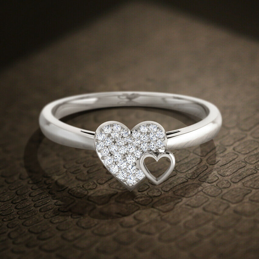 1Ct Round Cut VVS1 Diamond Dual Heart Love Engagement Ring 14K White Gold Finish