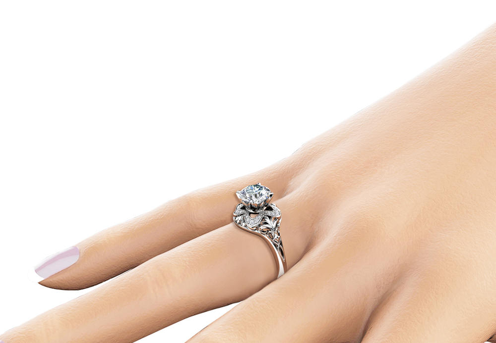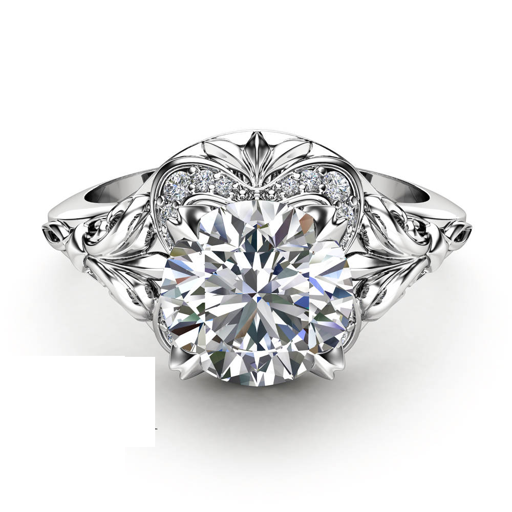 1ct Round Cut VVS1 Diamond Engagement Ring 14k White Gold Finish Antique Vintage