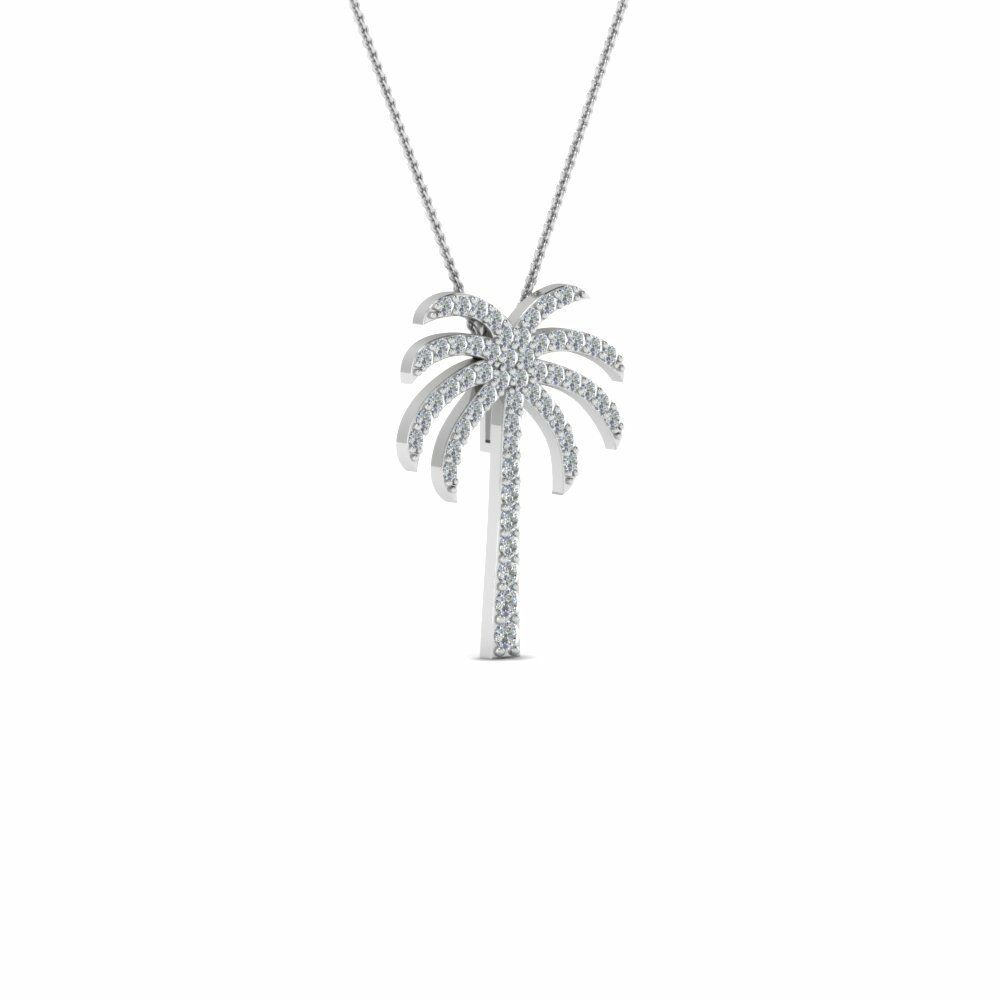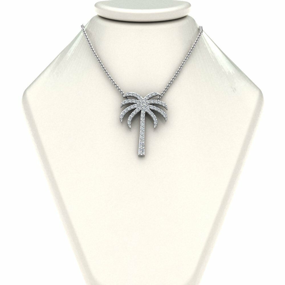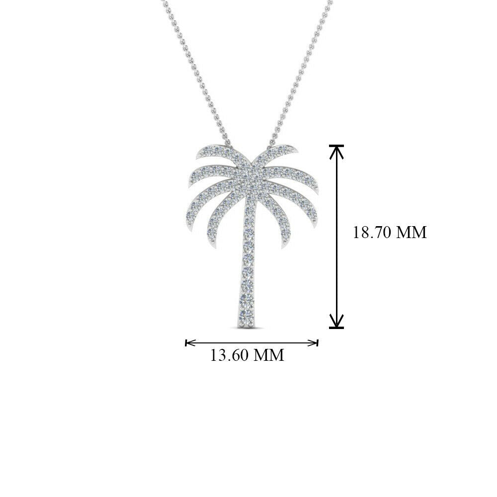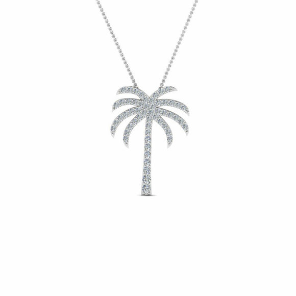 1ct Round Cut VVS1 Diamond Palm Tree Pendant 10k Real Solid White Gold NO CHAIN
