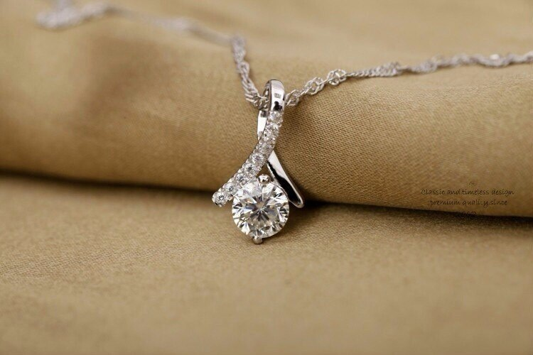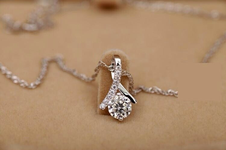 1ct Round Cut VVS1 Diamond Pendant Classic Design 14k White Gold Finish NO CHAIN