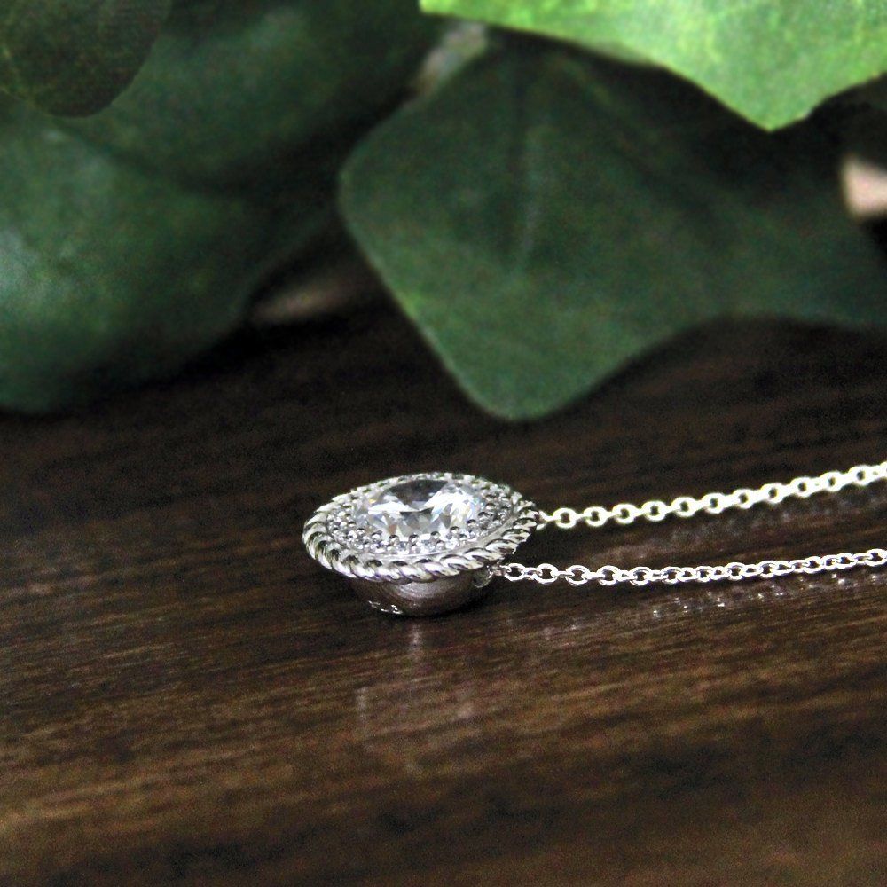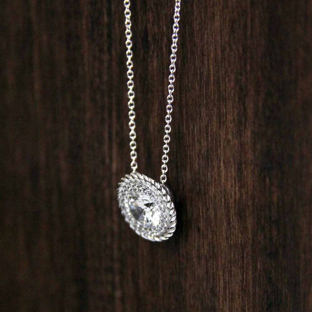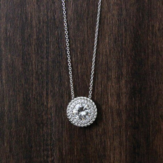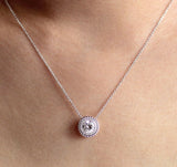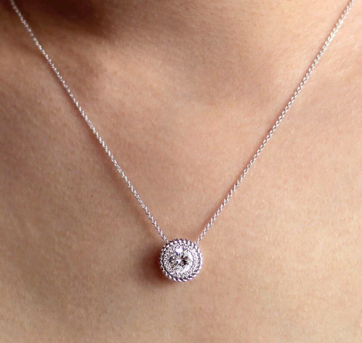 1ct Round Cut VVS1D Diamond Double Halo Pendant 14k White Gold Finish NO CHAIN