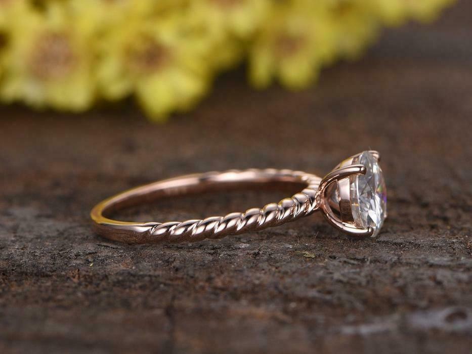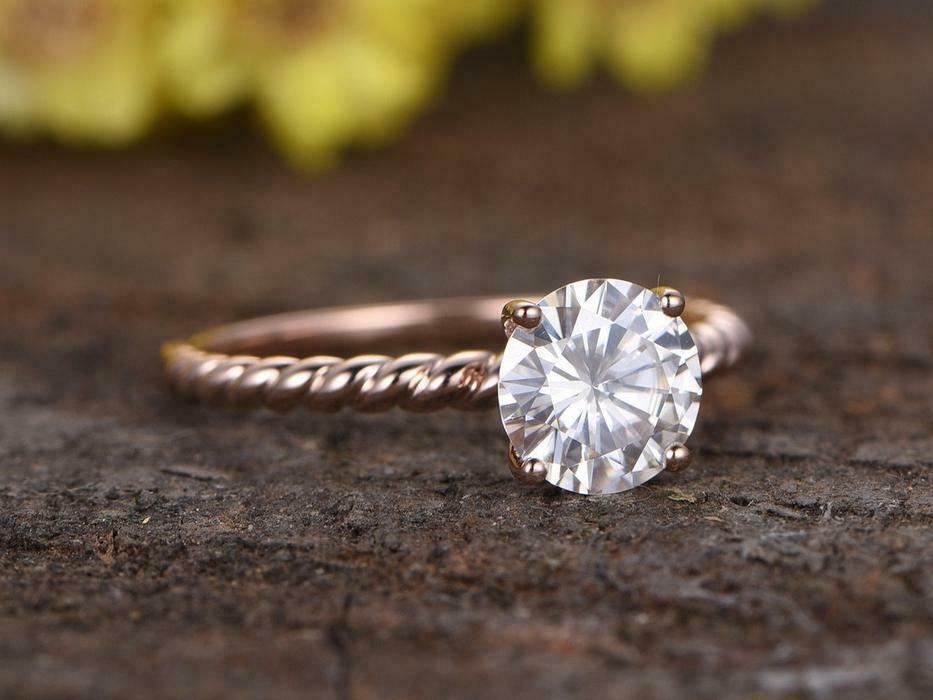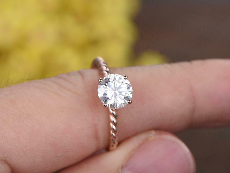 1ct Round Cut VVS1D Diamond Engagement Ring 14k Rose Gold Finish Rope Solitaire