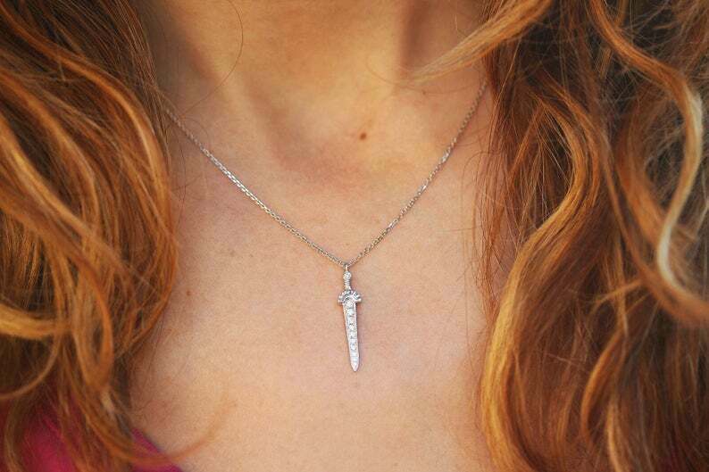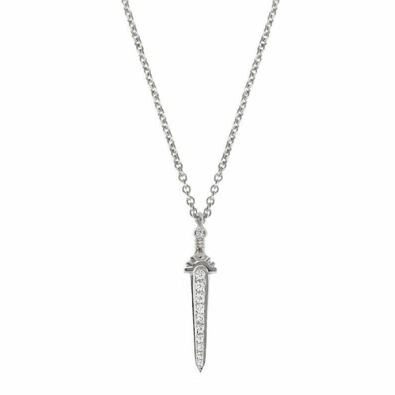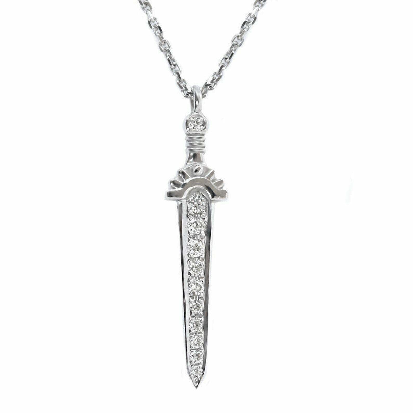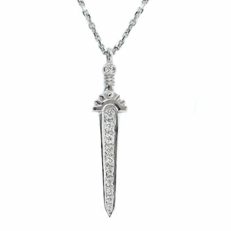 1ct Round Cut VVS1D Diamond Pendant with Chain Dagger 14k White Gold Finish