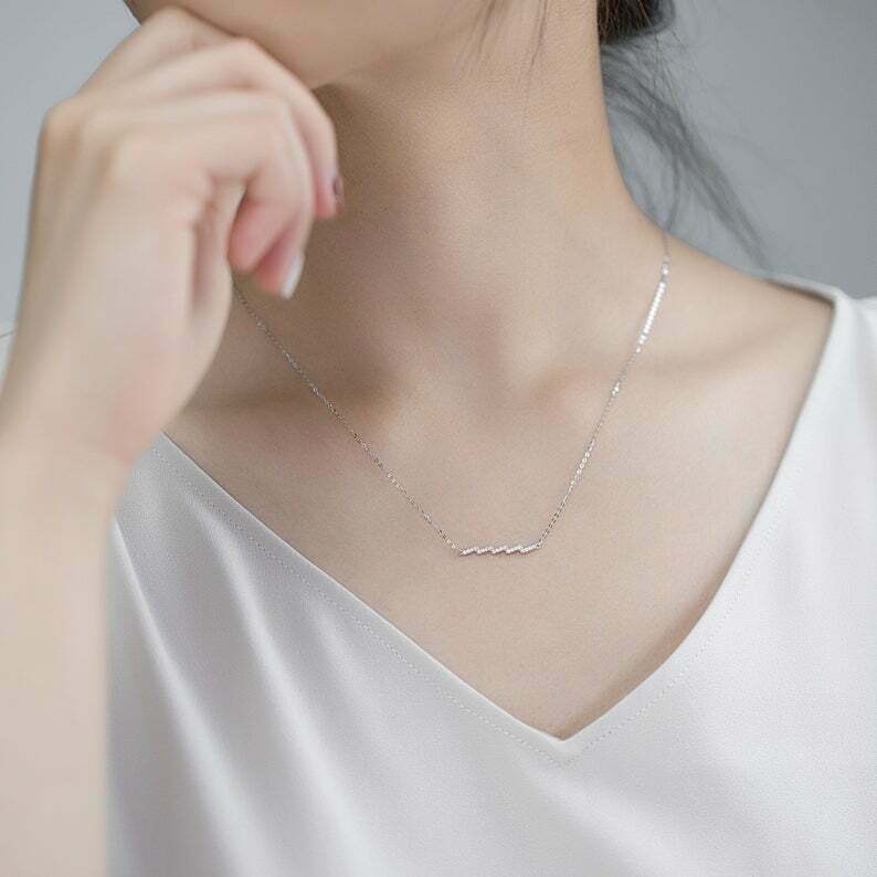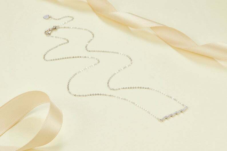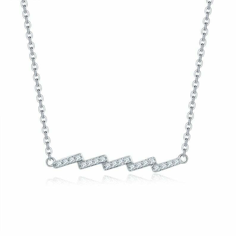 1ct Round Cut VVS1D Diamond Zig Zag Bar Pendant with Chain 14k YellowGold Finish