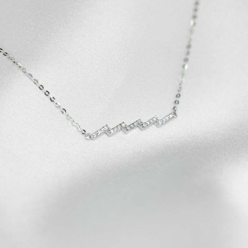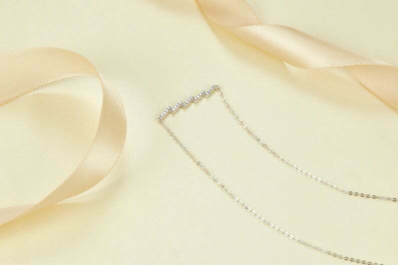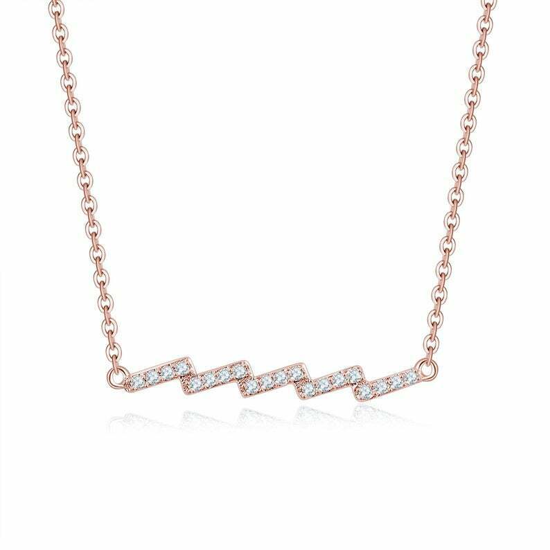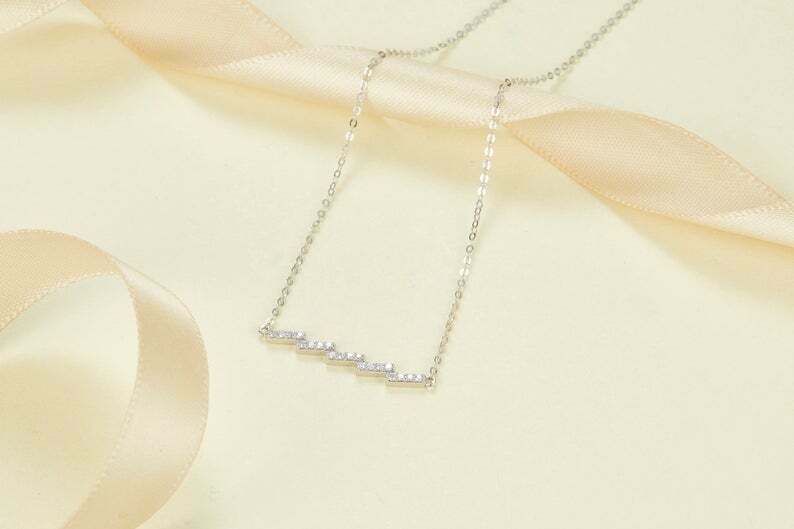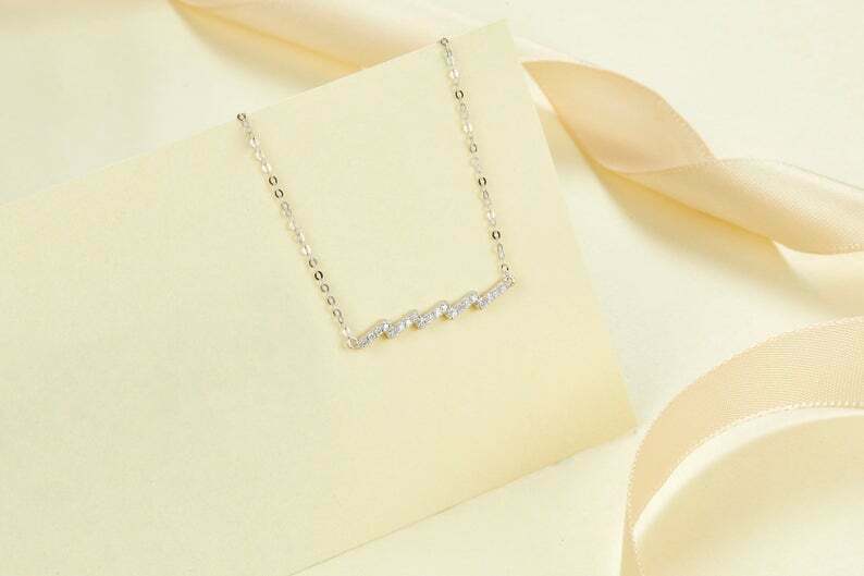 1ct Round Cut VVS1D Diamond Zig Zag Bar Pendant with Chain 14k Yellow Gold Finish