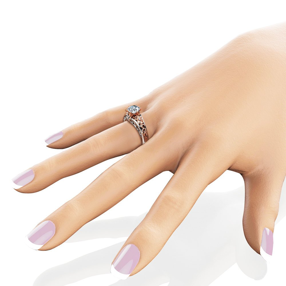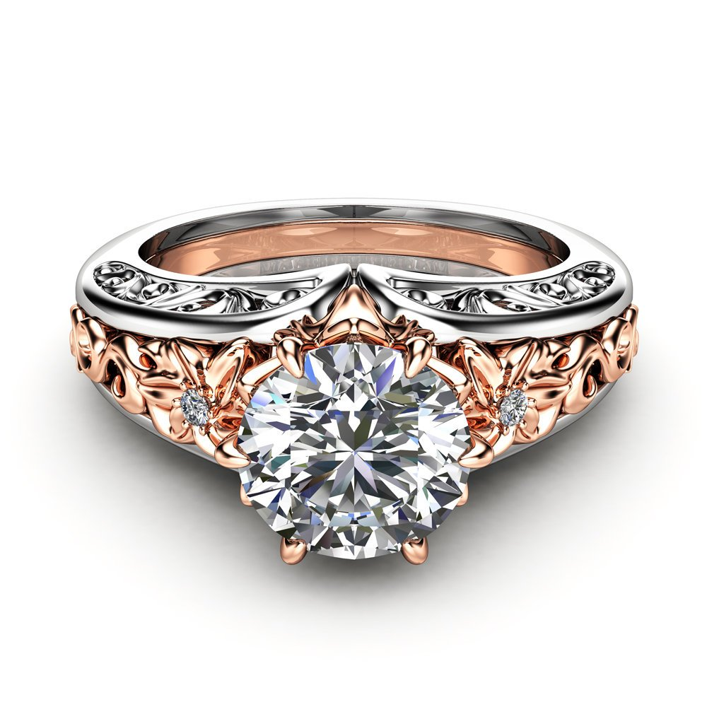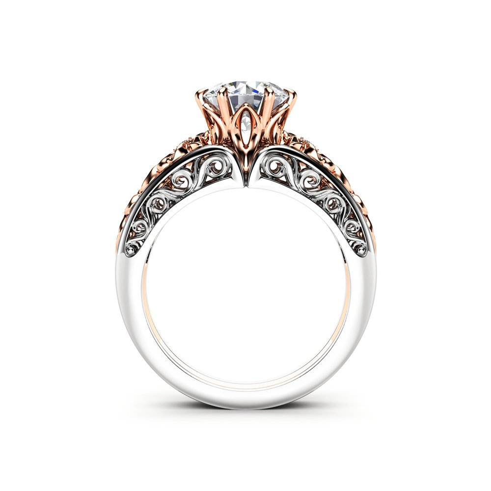 1ct Round Diamond Engagement Ring 14k White Gold Finish Unique Filigree Vintage