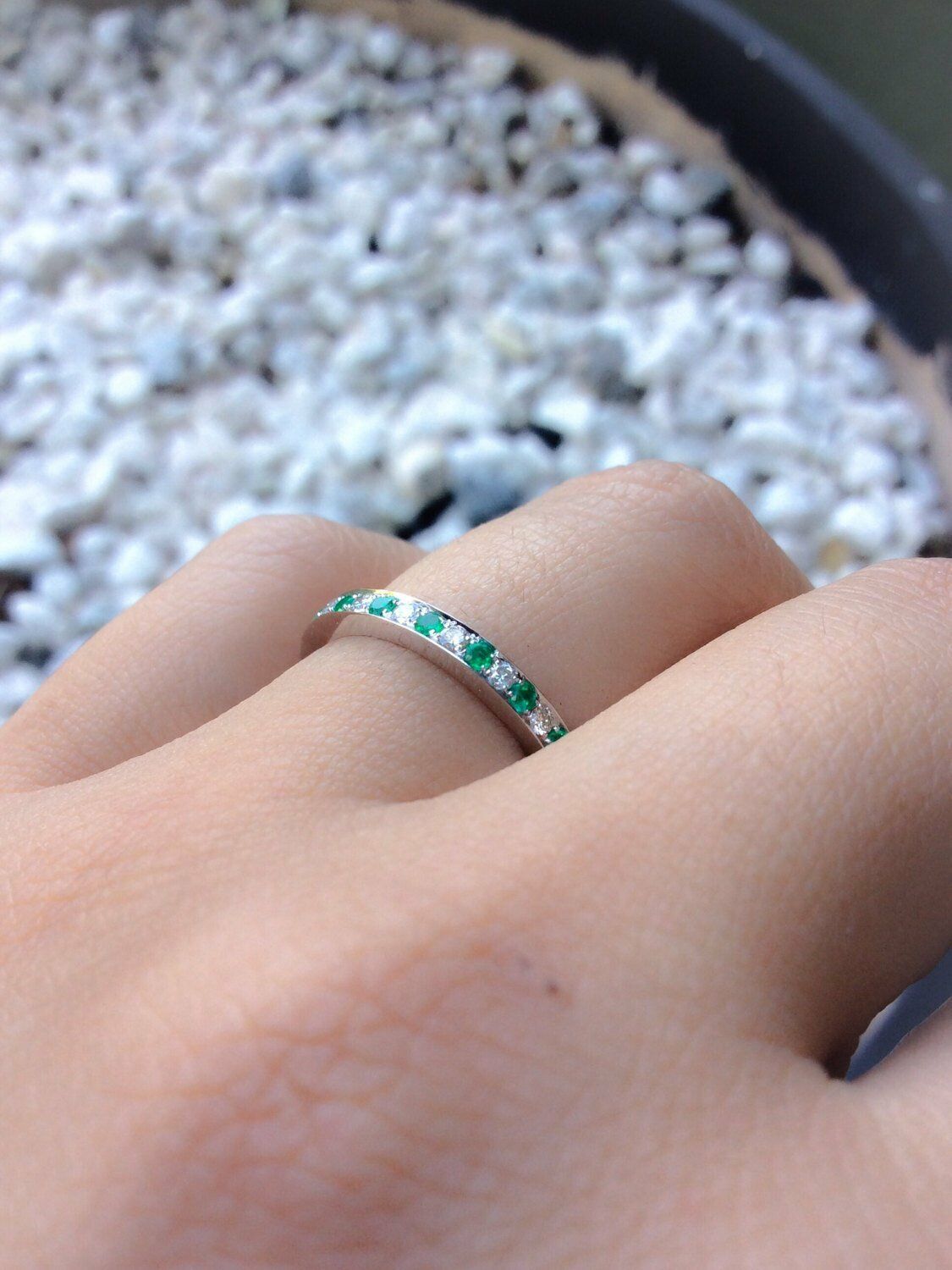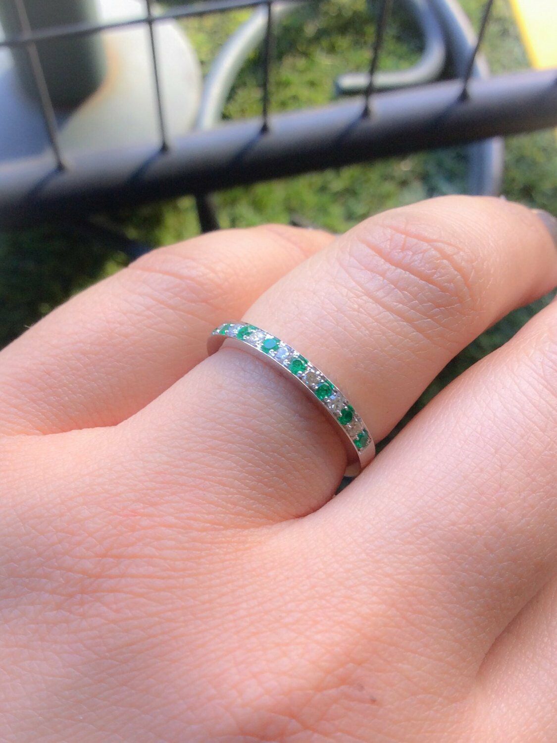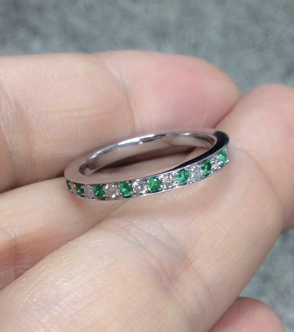 1ct Round Green Emerald Half Eternity Wedding Band Ring 14k White Gold Finish