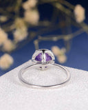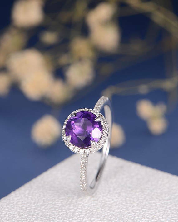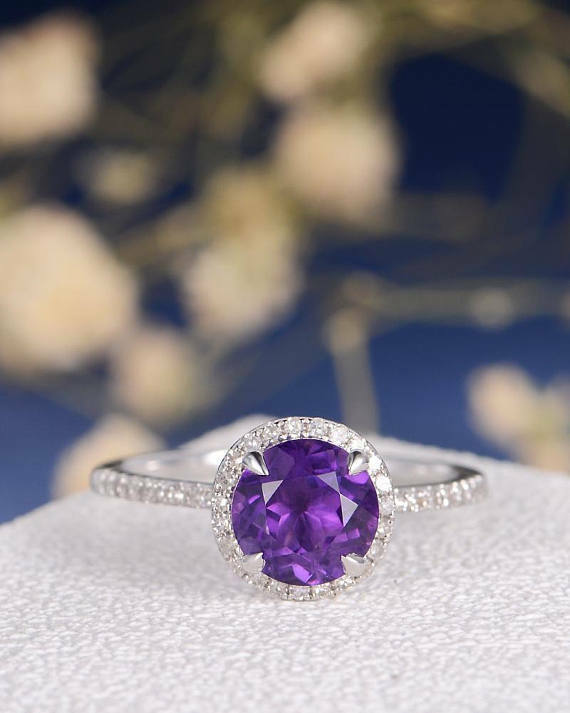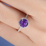 1ct Round Purple Amethyst Halo Solitaire Engagement Ring 14k White Gold Finish