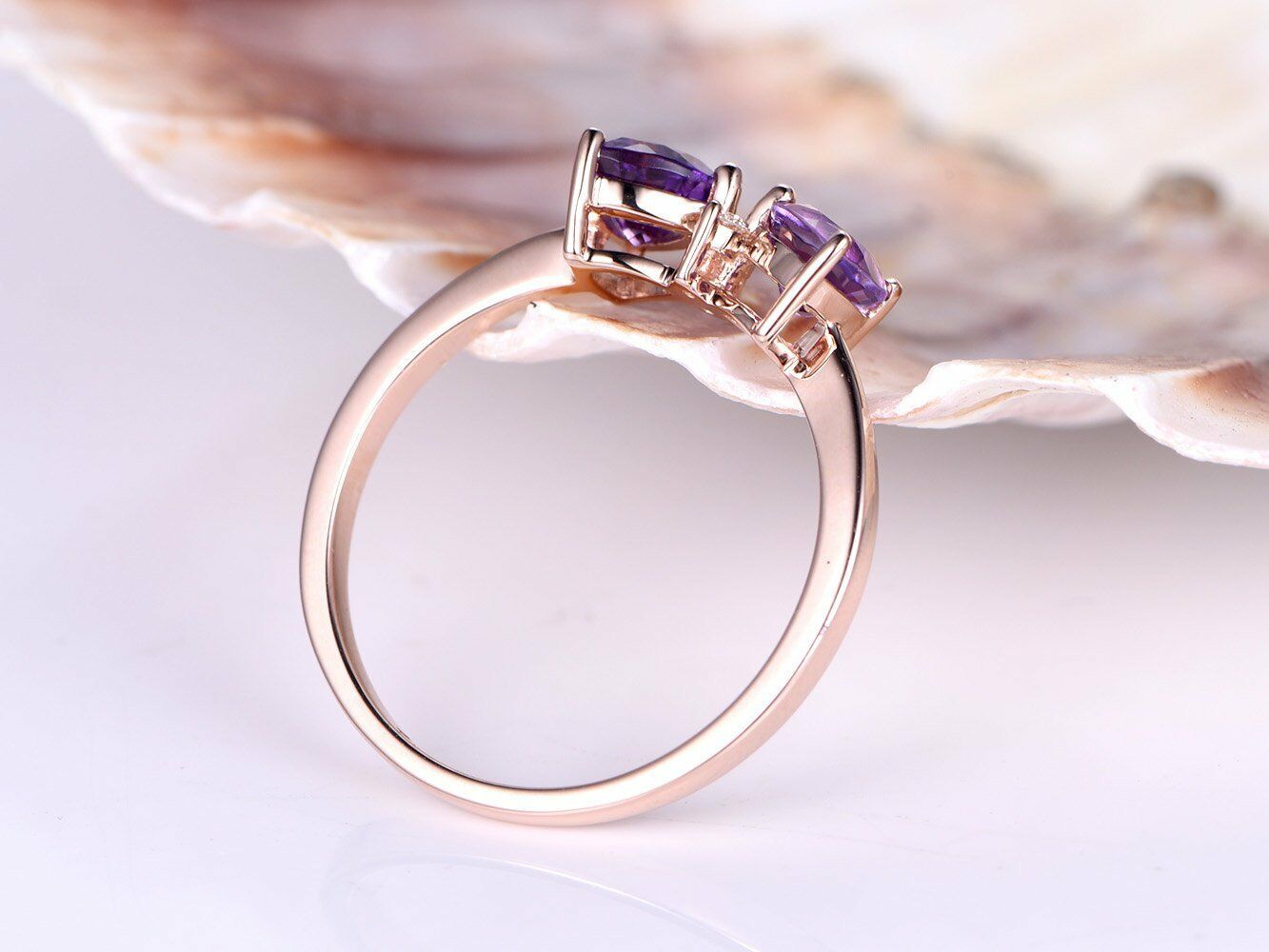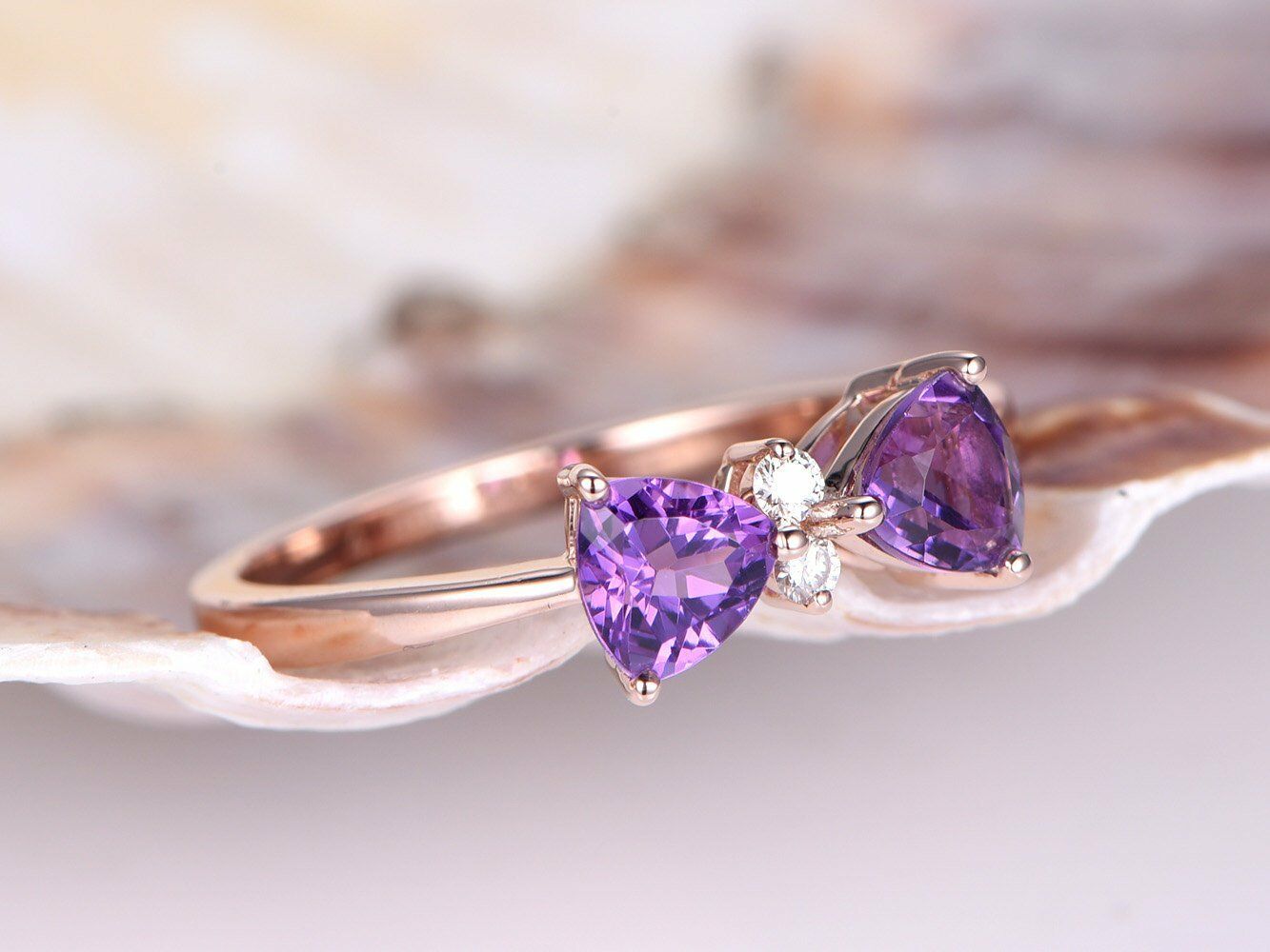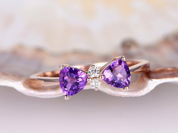 1ct Trillion Cut Purple Amethyst Bow Design Engagement Ring 14k Rose Gold Finish