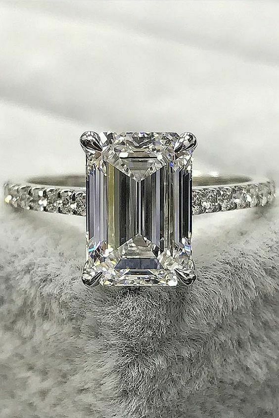 2.1ct Emerald Cut Diamond Accent Solitaire Engagement Ring 14k White Gold Finish