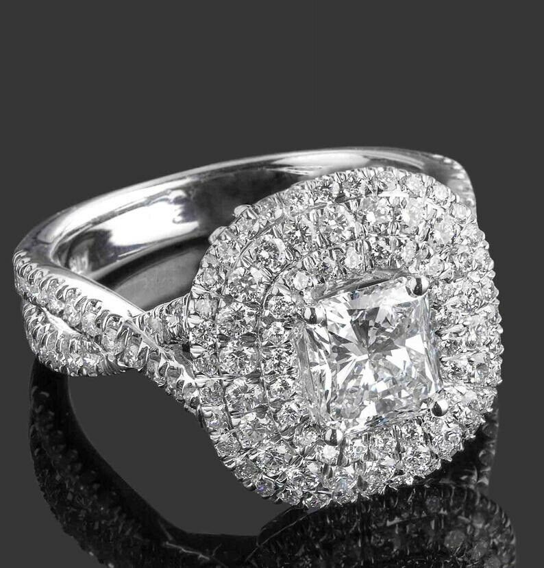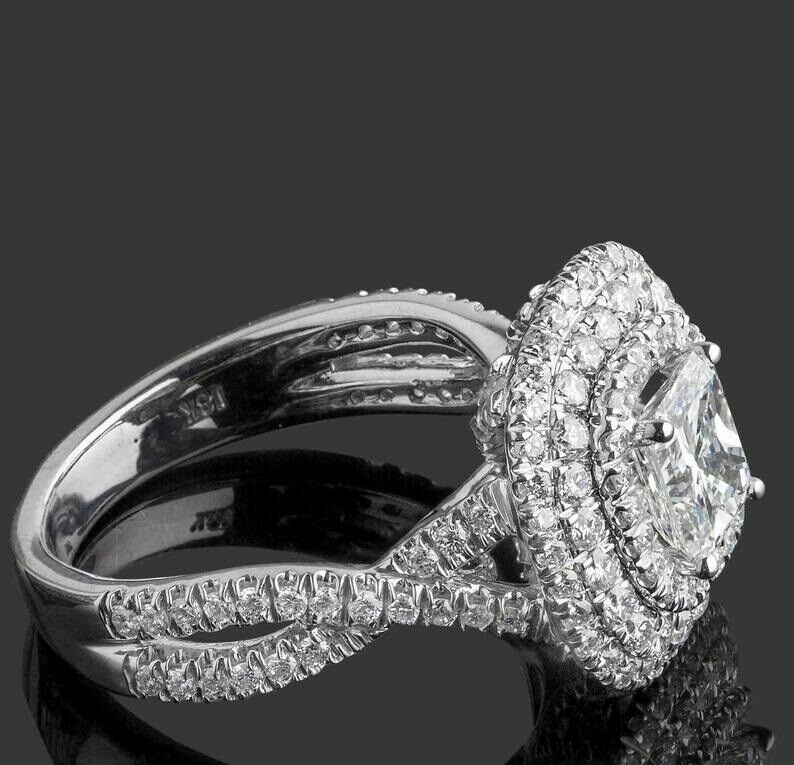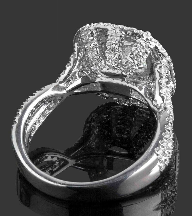 2.27ct Radiant Cut Diamond Triple Halo Cocktail Iced Ring 14k White Gold Finish