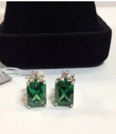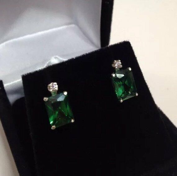 2.2ct Green Emerald Diamond Elegant Women Drop Earrings 14k White Gold Finish