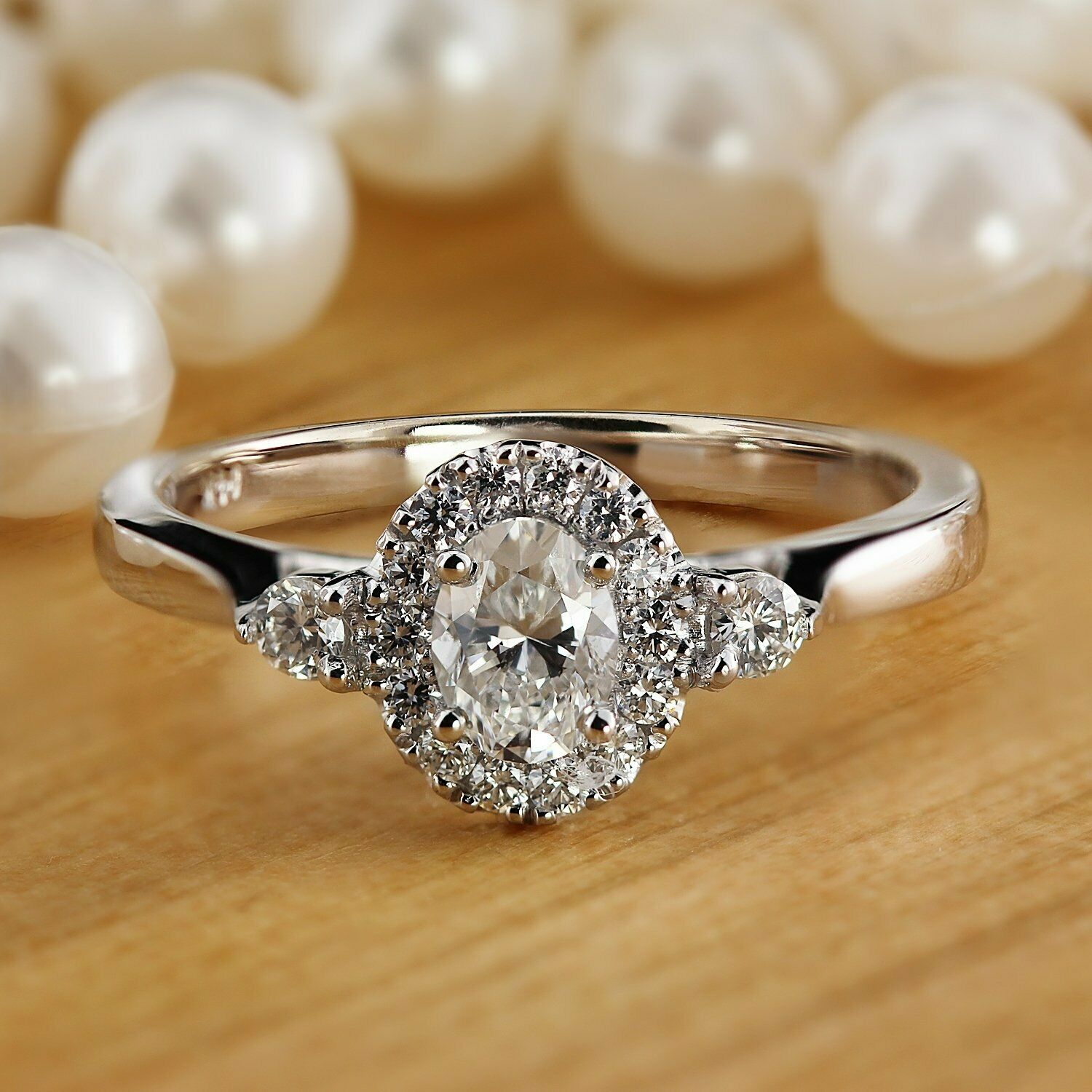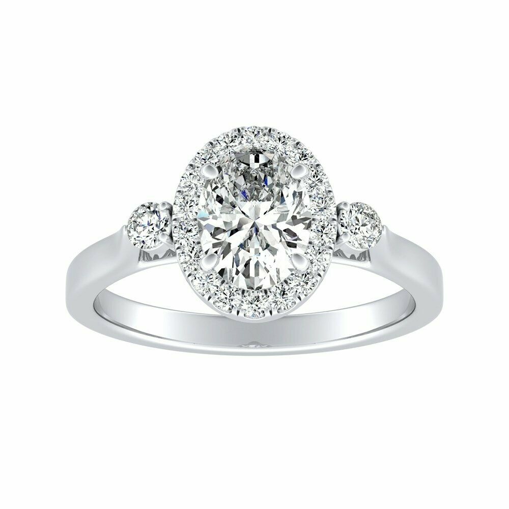 2.2Ct Oval Cut Diamond Round Accents Halo Engagement Ring 14K White Gold Finish
