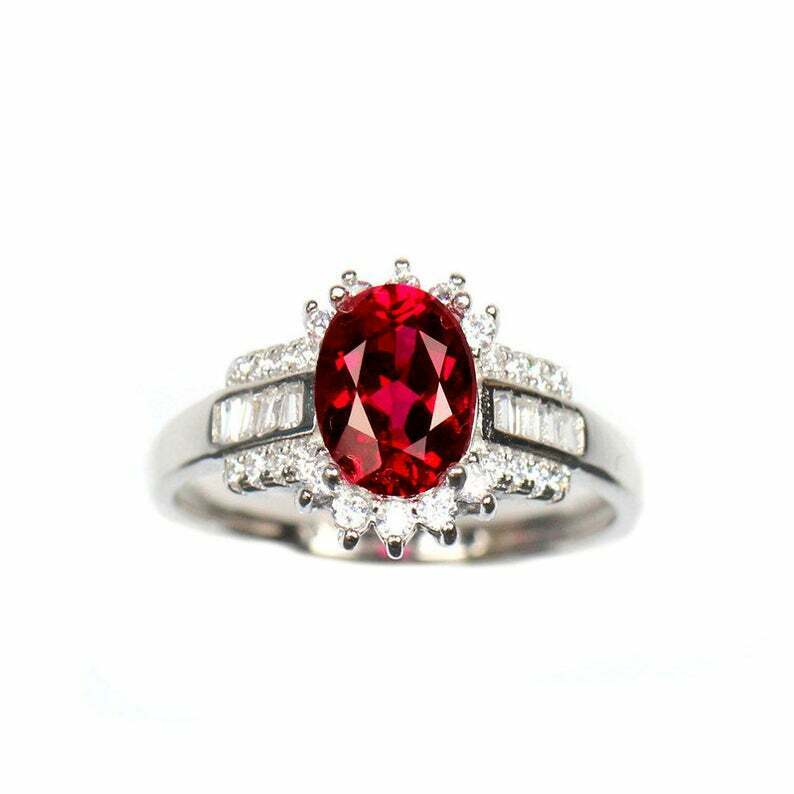 2.2ct Oval Cut Pink Ruby Engagement Ring Art Deco 14k White Gold Finish