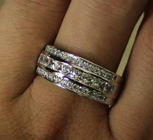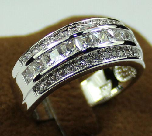 2.2Ct Princess Cut Diamond Half Eternity Wide Wedding Band 14K White Gold Finish