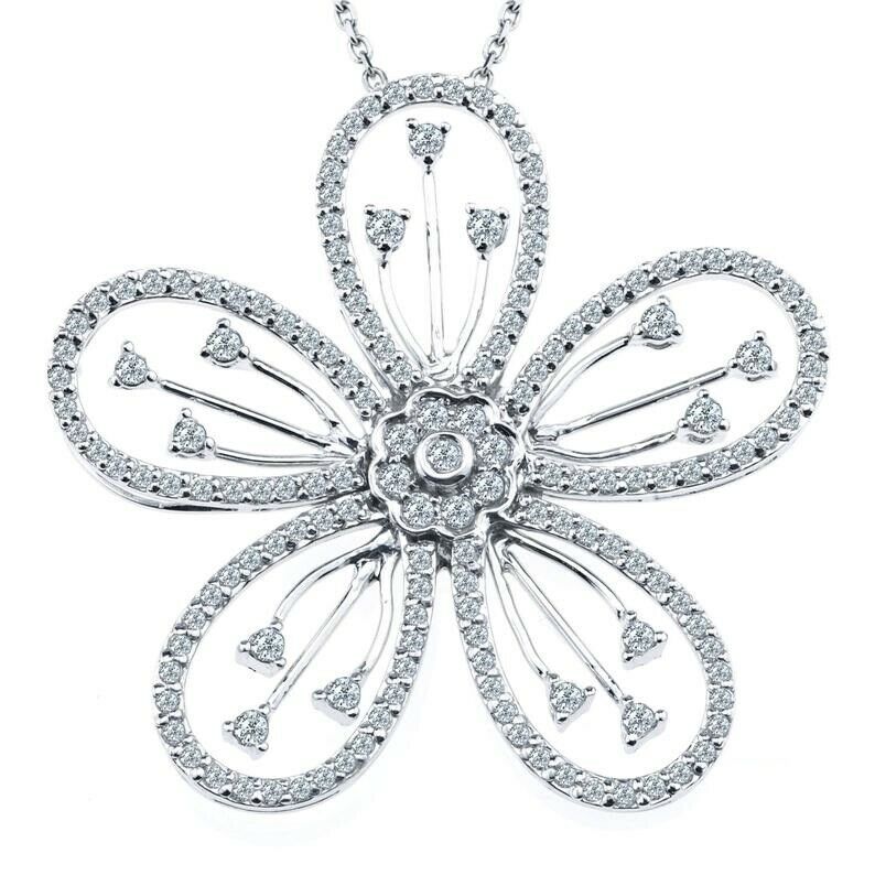 2.2ct Round Cut Diamond Pendant with Chain Flower Design 14k White Gold Finish