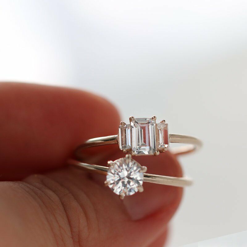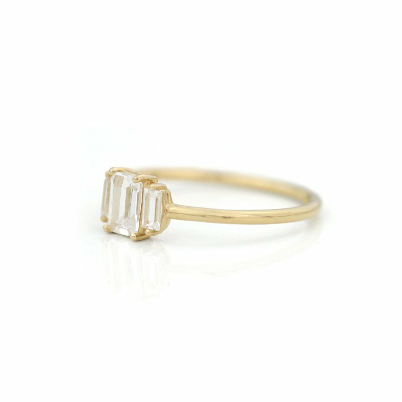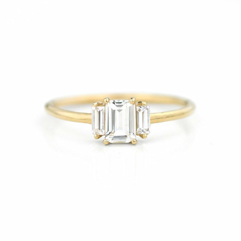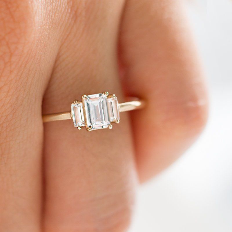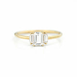 2.3ct Emerald Cut Diamond Classic Trilogy Engagement Ring 14k Yellow Gold Finish