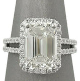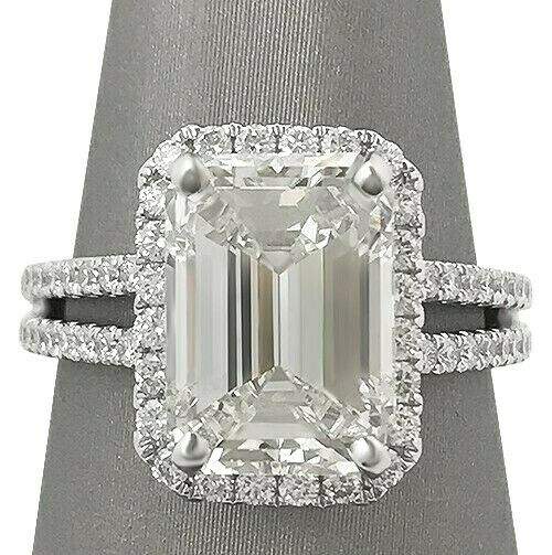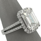2.3Ct Emerald Cut Diamond Split Shank Halo Engagement Ring 14K White Gold Finish