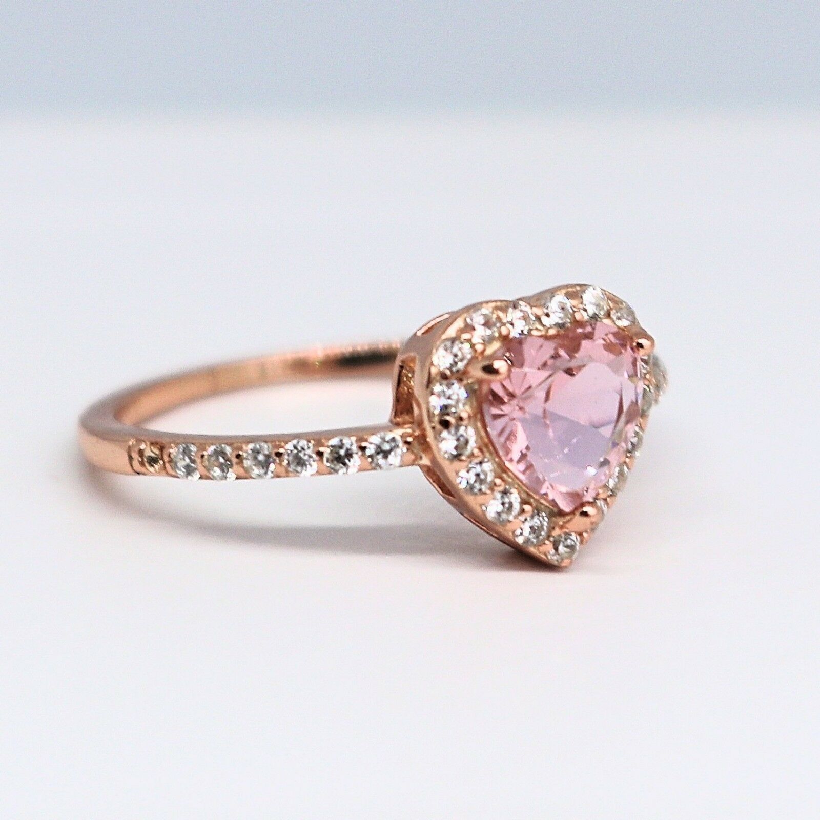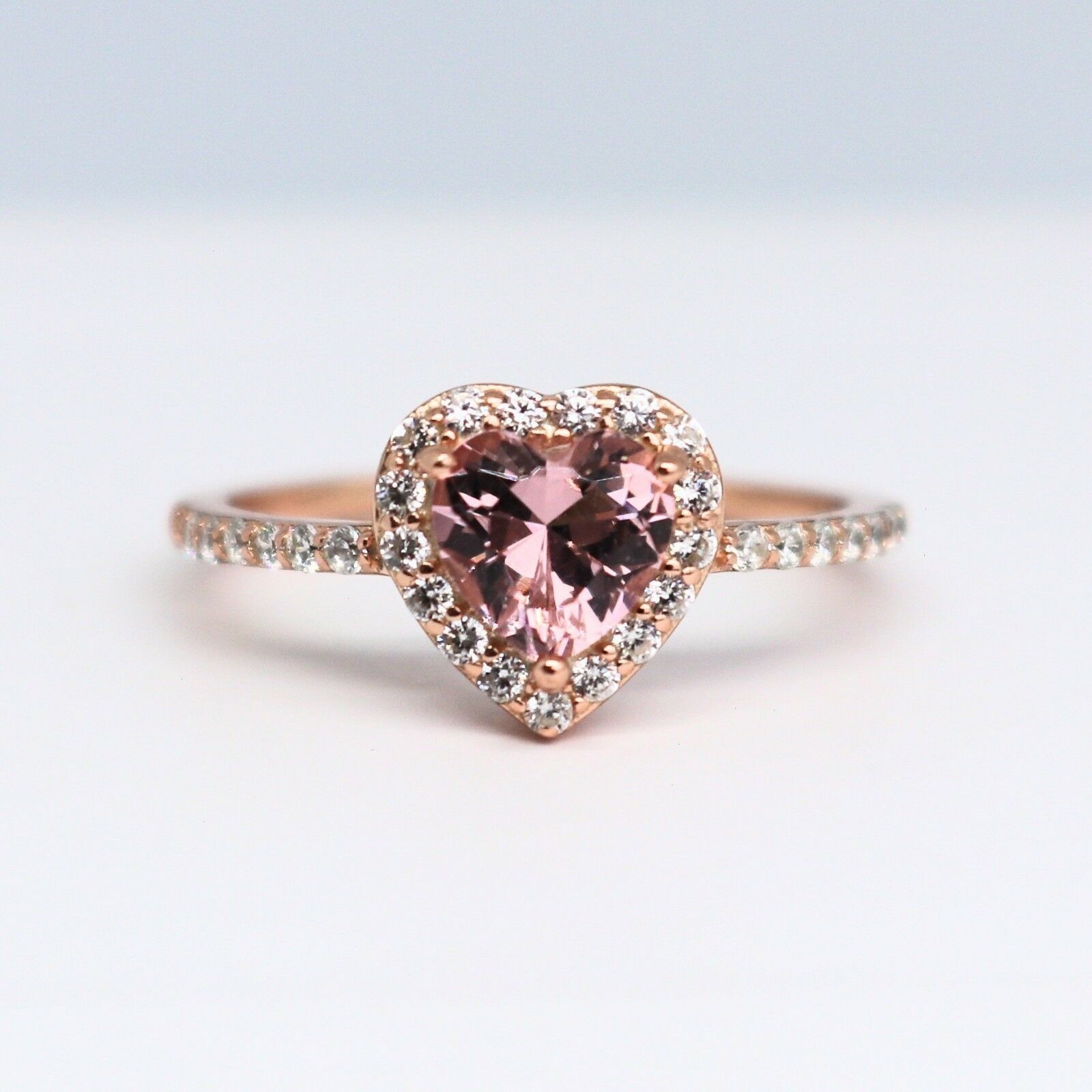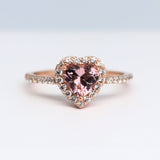 2.3Ct Heart Cut Peach Morganite Diamond Halo Engagement Ring 14K Rose Gold Over