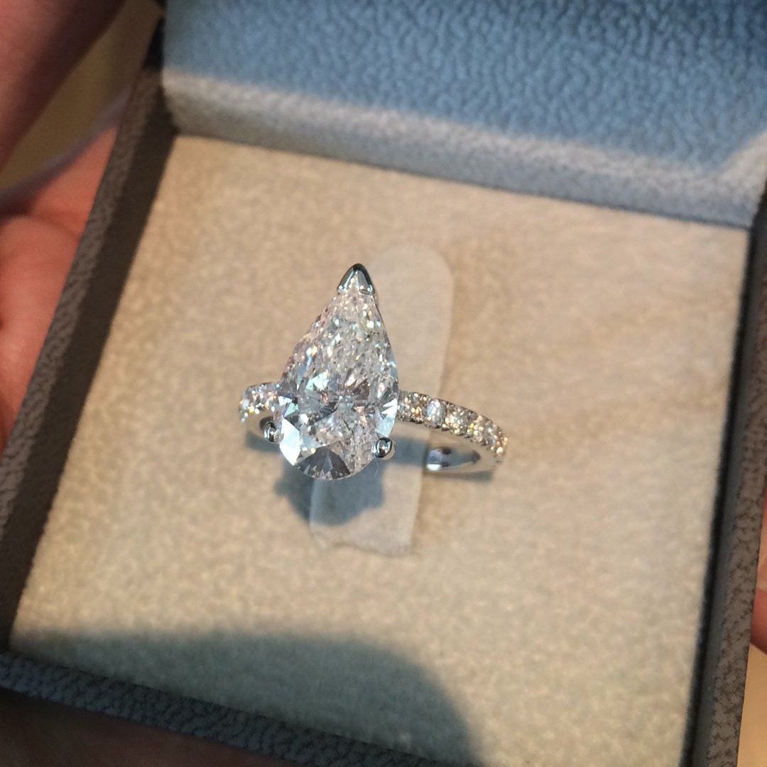 2.3ct Pear Cut Diamond Accents Solitaire Engagement Ring 14k White Gold Finish