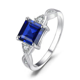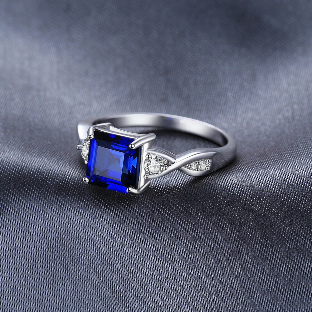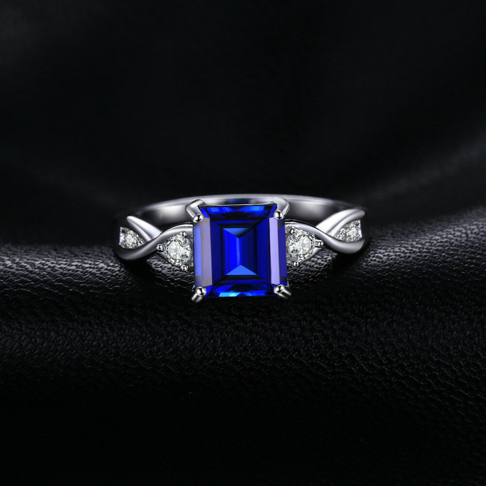 2.3Ct Princess Cut Blue Sapphire Engagement Ring Solitaire 14k White Gold Finish