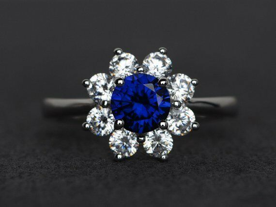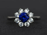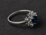 2.3ct Round Cut Blue Sapphire Engagement Ring 14k White Gold Finish Halo Floral