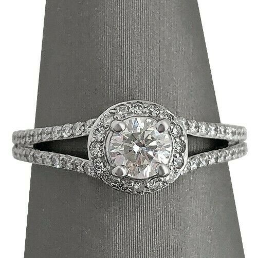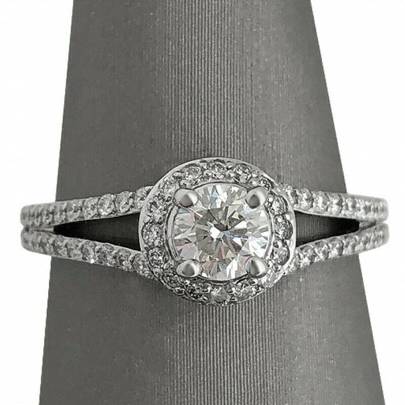 2.3Ct Round Cut Diamond Split Shank Halo Engagement Ring 14K White Gold Finish