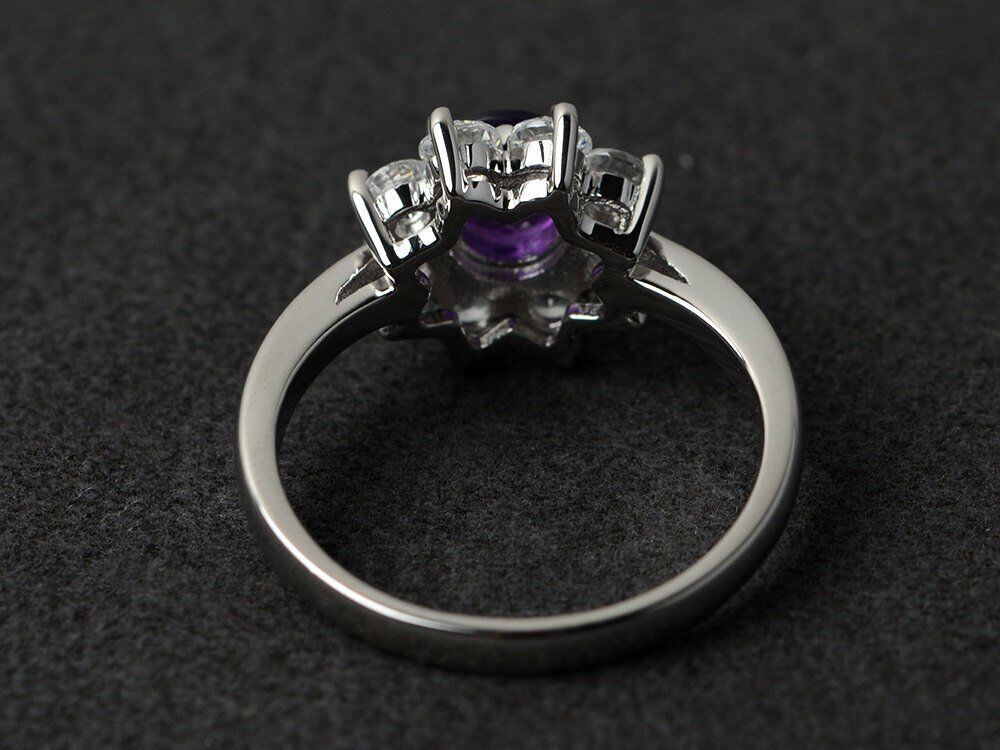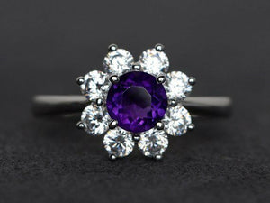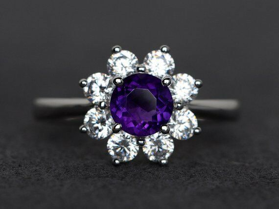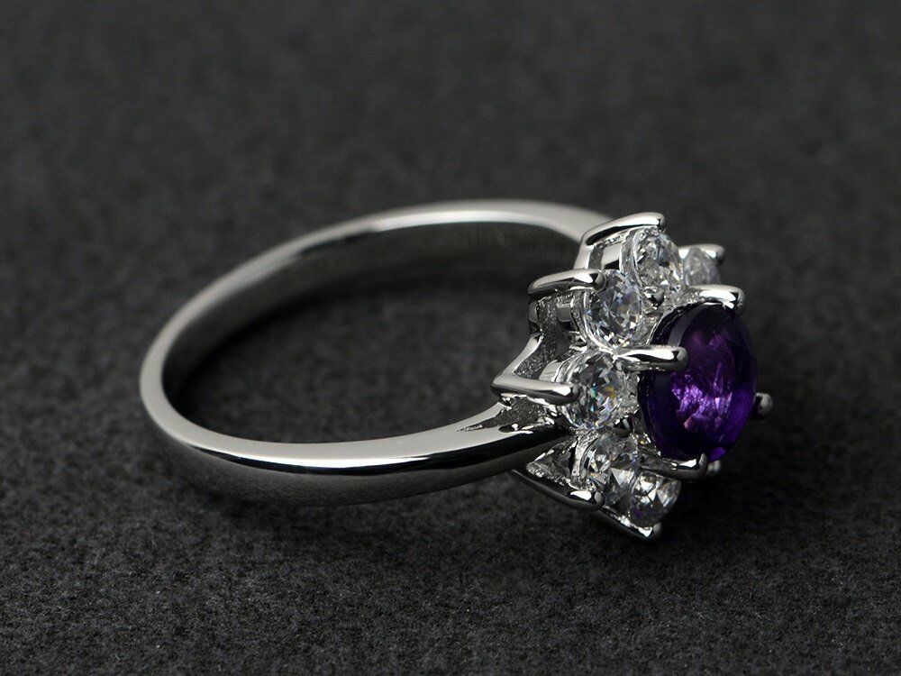 2.3ct Round Cut Purple Amethyst Engagement Ring 14k WhiteGold Finish Halo Floral