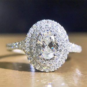 2.4ct Oval Cut VVS1D Diamond Engagement Ring 14k White Gold Finish Double Halo