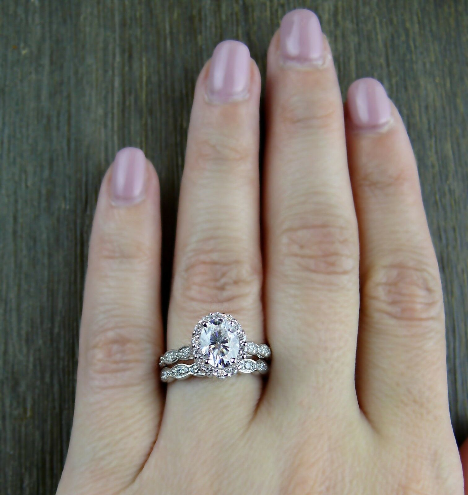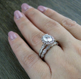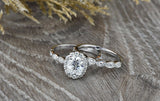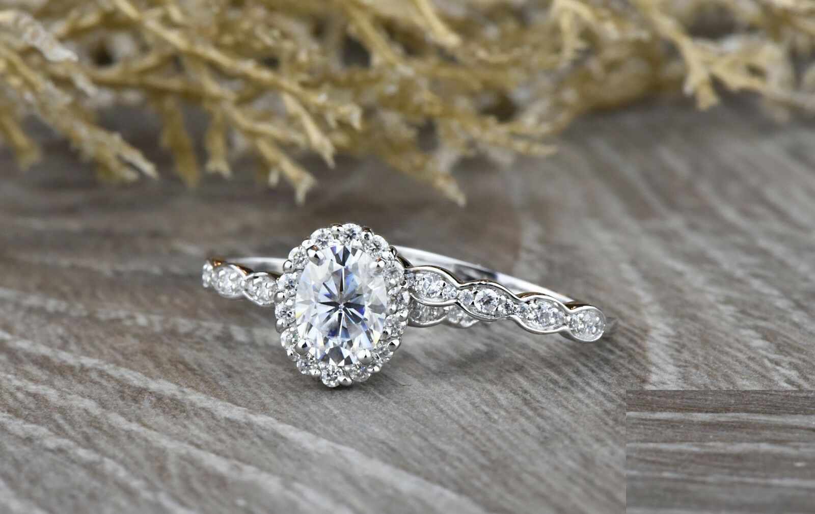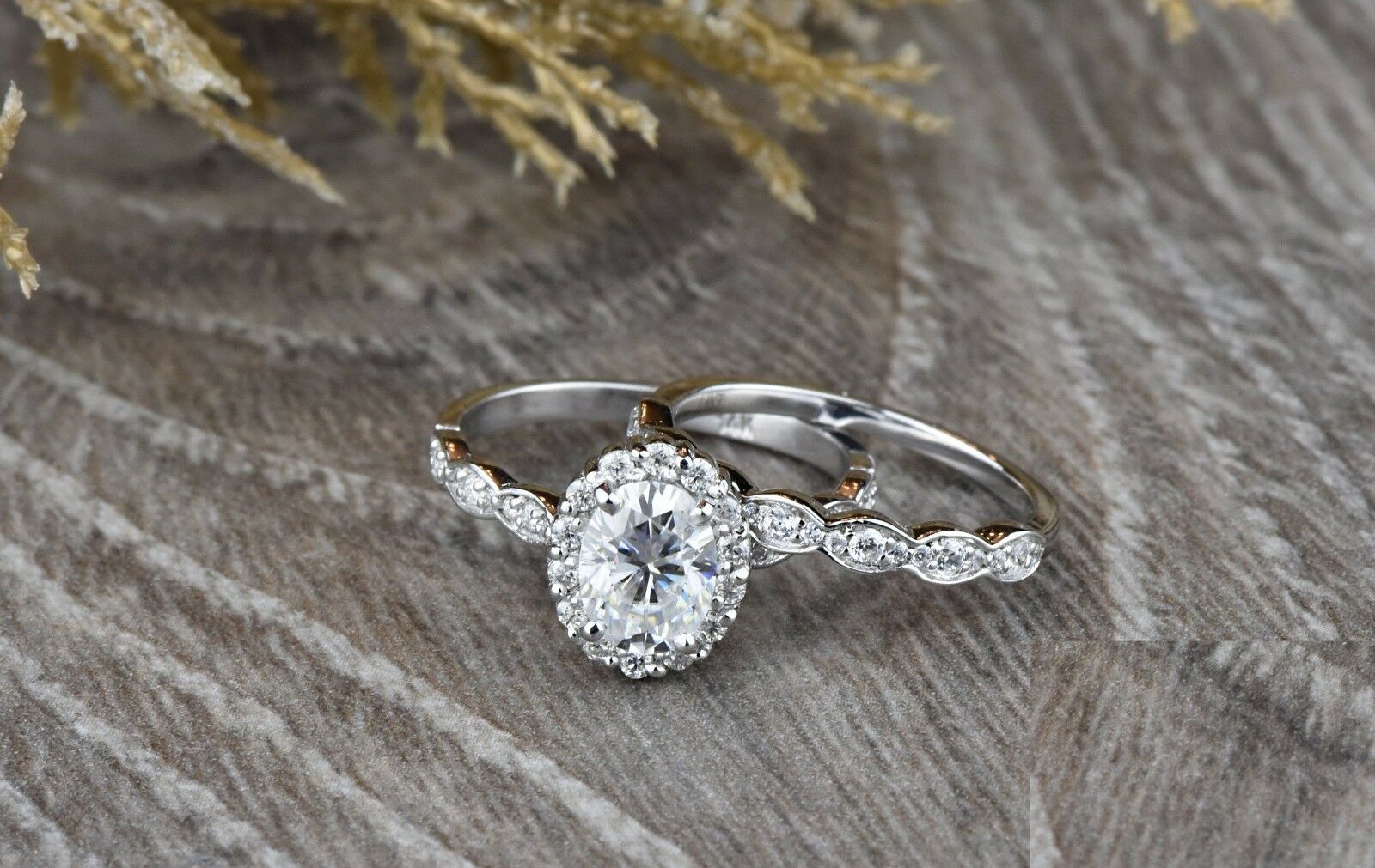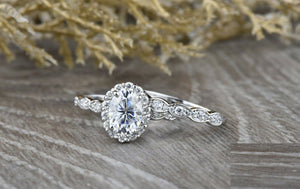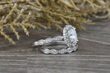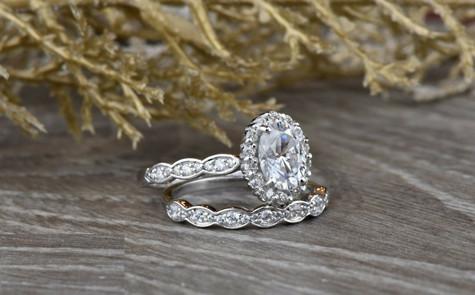 2.4ct Oval Diamond Engagement Ring 14k White Gold Finish Halo Vintage Bridal Set