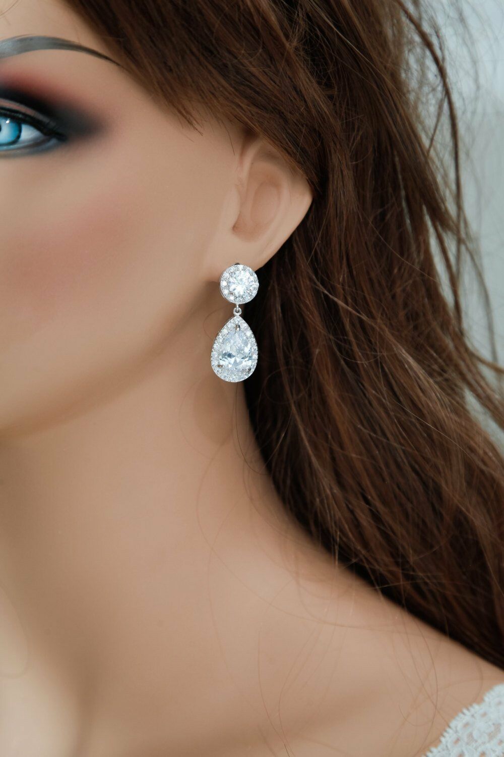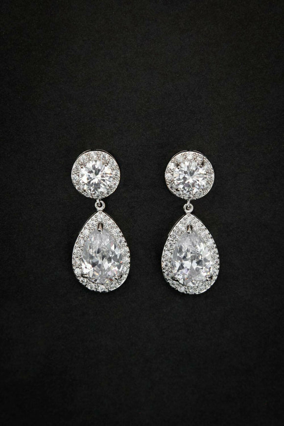 2.4ct Pear Cut VVS1 Diamond Halo Tear Rain Drop Earrings 14k White Gold Finish
